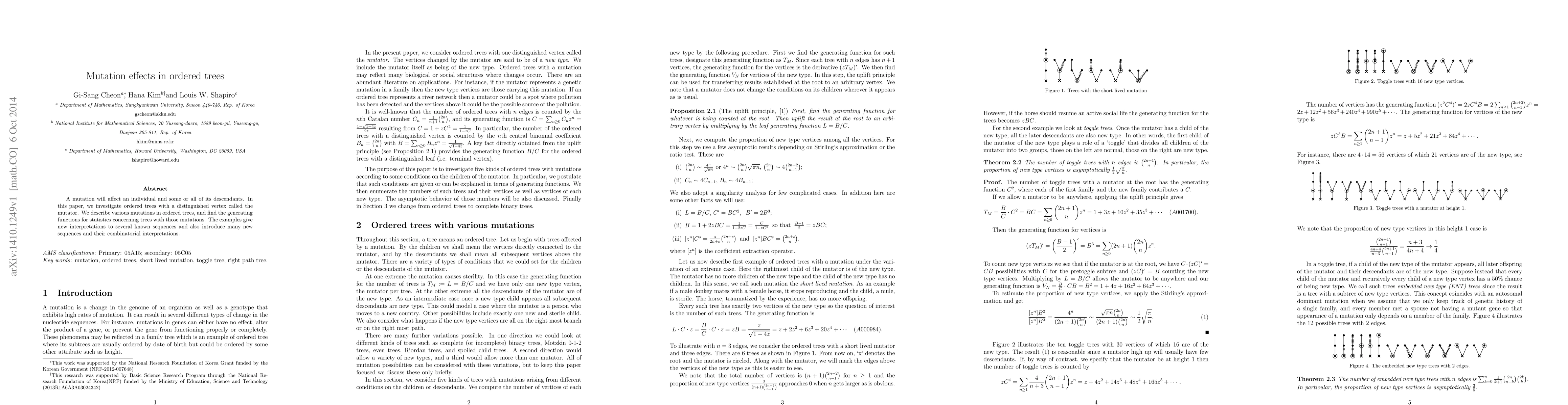 A mutation will affect an individual and some or all of its descendants. In this paper, we investigate ordered trees with a distinguished vertex called the mutator. We describe various mutations in ordered trees, and find the generating functions for statistics concerning trees with those mutations. The examples give new interpretations to several known sequences and also introduce many new sequences and their combinatorial interpretations.