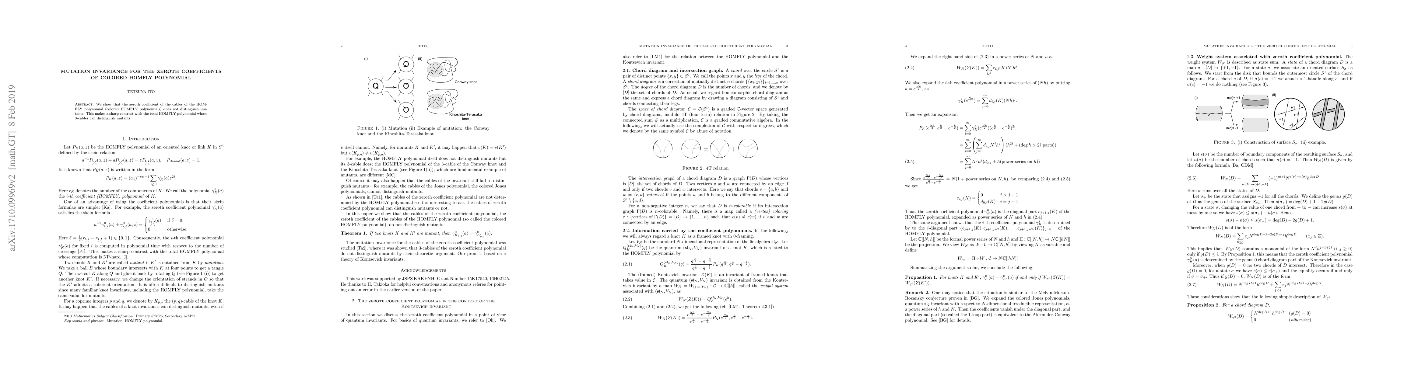 Summary: The study reveals that the zeroth coefficient of the colored HOMFLY polynomial remains invariant under mutation, unlike the total HOMFLY polynomial, which can distinguish mutant knots. This finding highlights a unique property of the colored HOMFLY polynomial.