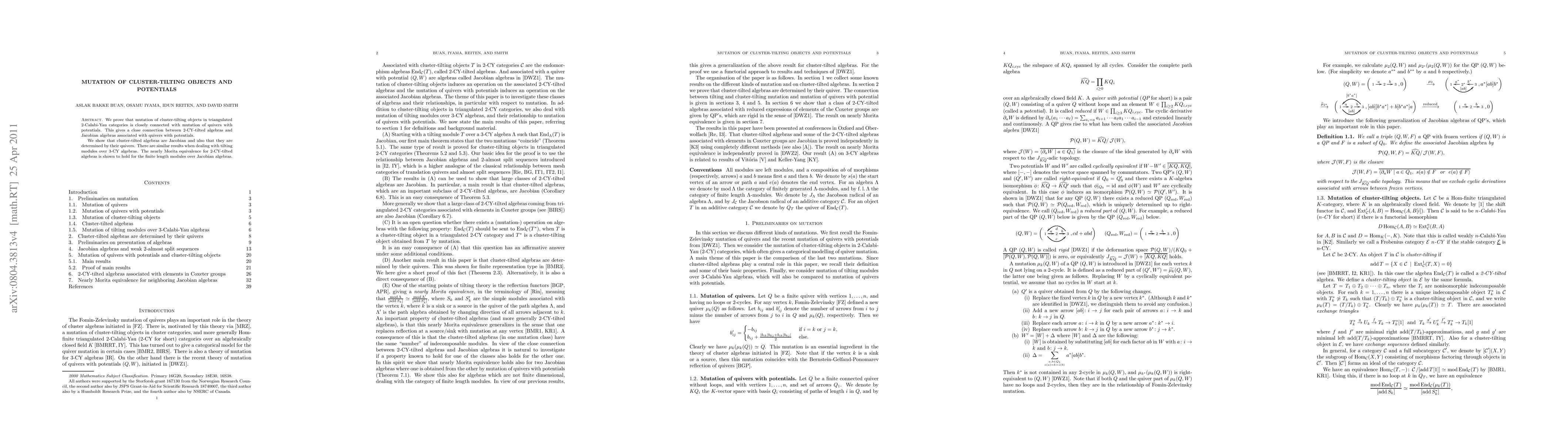 This paper establishes a connection between the mutation of cluster-tilting objects in triangulated 2-Calabi-Yau categories and the mutation of quivers with potentials, linking 2-CY-tilted algebras to Jacobian algebras. It also demonstrates that cluster-tilted algebras are Jacobian and determined by their quivers, with similar results for tilting modules over 3-CY algebras.