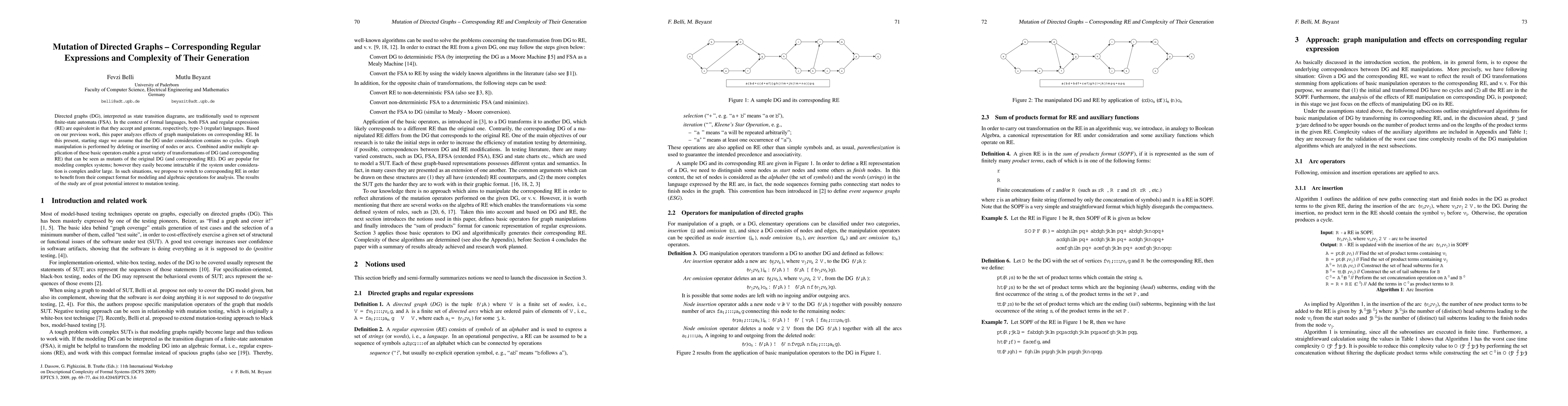 Directed graphs (DG), interpreted as state transition diagrams, are traditionally used to represent finite-state automata (FSA). In the context of formal languages, both FSA and regular expressions (RE) are equivalent in that they accept and generate, respectively, type-3 (regular) languages. Based on our previous work, this paper analyzes effects of graph manipulations on corresponding RE. In this present, starting stage we assume that the DG under consideration contains no cycles. Graph manipulation is performed by deleting or inserting of nodes or arcs. Combined and/or multiple application of these basic operators enable a great variety of transformations of DG (and corresponding RE) that can be seen as mutants of the original DG (and corresponding RE). DG are popular for modeling complex systems; however they easily become intractable if the system under consideration is complex and/or large. In such situations, we propose to switch to corresponding RE in order to benefit from their compact format for modeling and algebraic operations for analysis. The results of the study are of great potential interest to mutation testing.