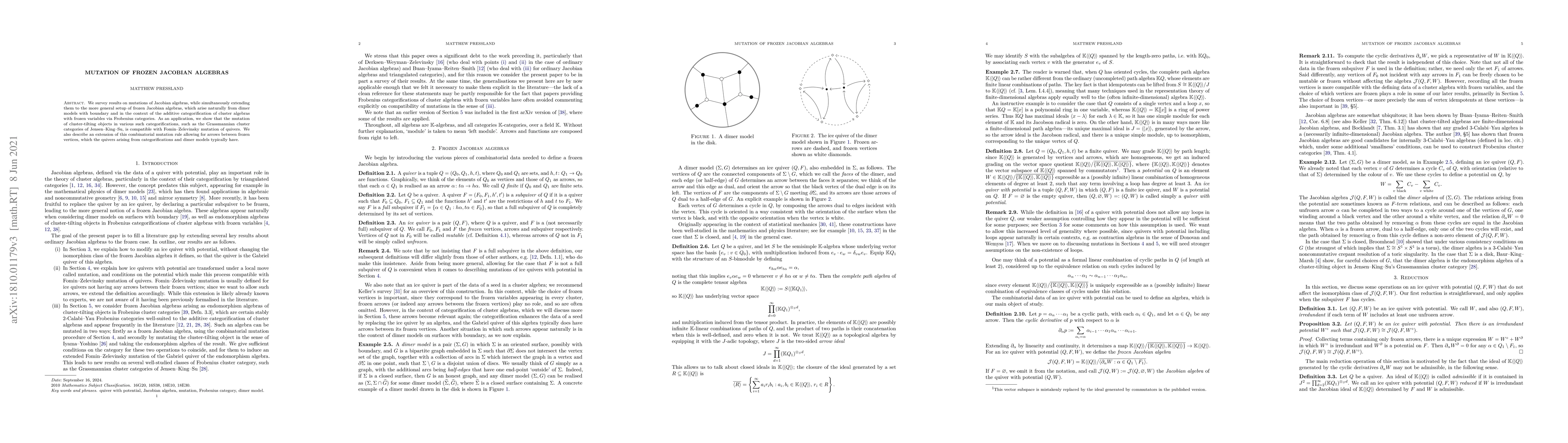 This paper surveys and extends the mutation theory of Jacobian algebras to frozen Jacobian algebras, demonstrating compatibility with Fomin-Zelevinsky quiver mutations in various categorifications. It introduces a combinatorial mutation rule accommodating arrows between frozen vertices, applicable in contexts like Grassmannian cluster categories.