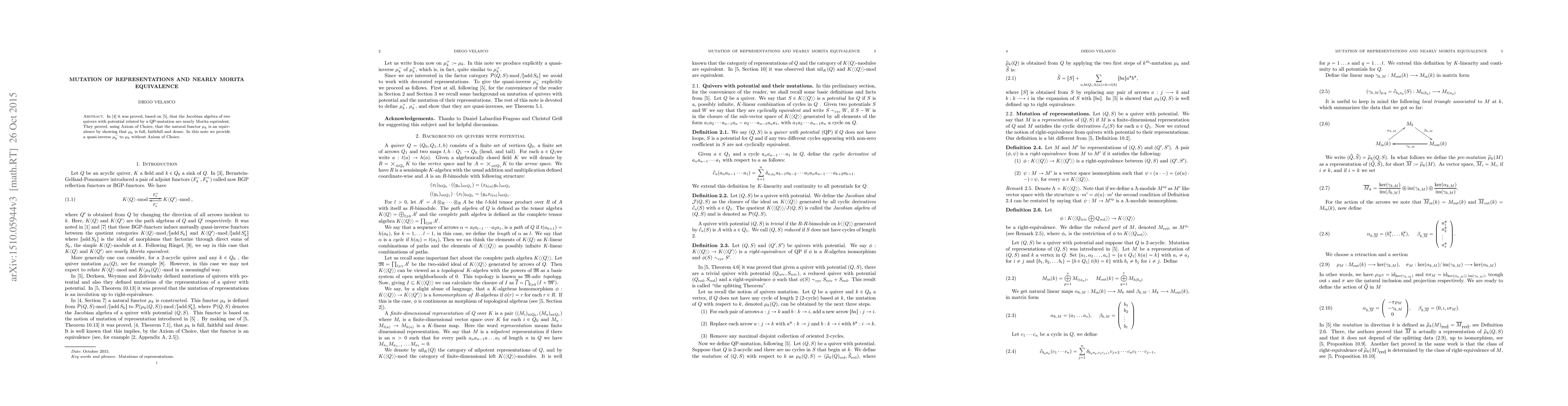 Buan-Iyama-Reiten-Smith proved, based on Derksen-Weyman-Zelevinsky work, that the Jacobian algebra of two quivers with potential related by a QP-mutation are nearly Morita equivalent. They proved, using Axiom of Choice, that the natural functor $\mu_k$ is an equivalence by showing that $\mu_k$ is full, faithfull and dense. In this note we provide a quasi-inverse $\mu_k^-$ to $\mu_k$ without Axiom of Choice.