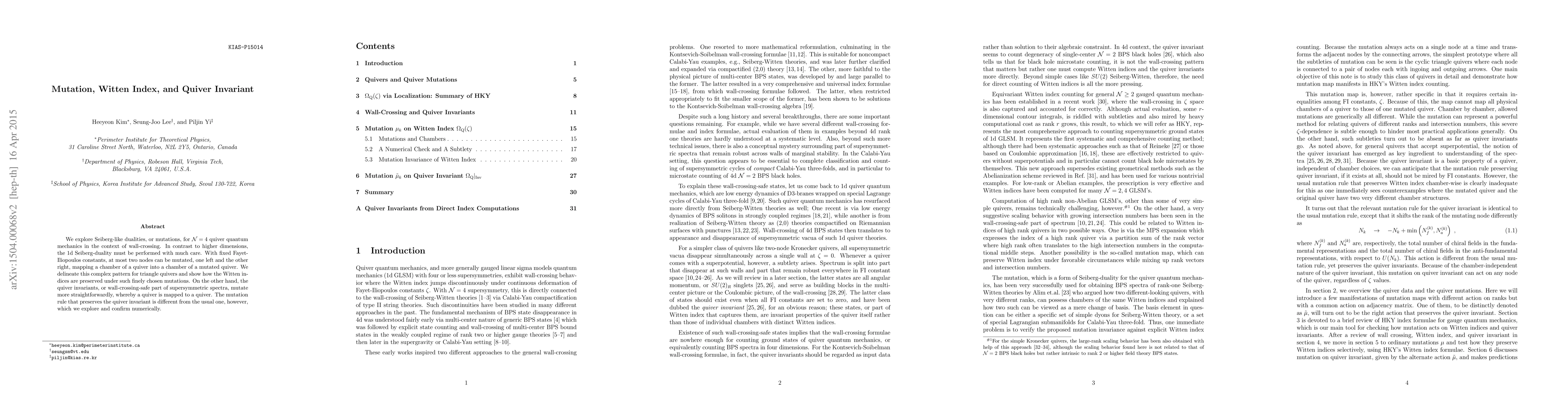 This research investigates the delicate process of Seiberg-like dualities, or mutations, in 1d ${\cal N}=4$ quiver quantum mechanics, focusing on triangle quivers. It reveals that while Witten indices remain invariant under carefully chosen mutations, the quiver invariants—the stable parts of supersymmetric spectra—are mapped via a distinct mutation rule, confirmed through numerical analysis.
