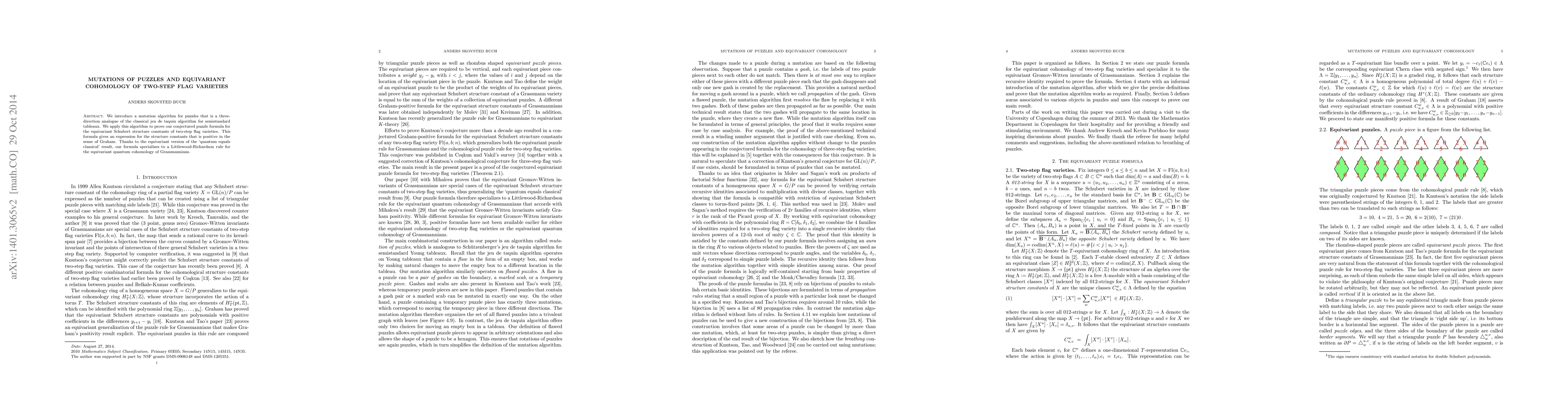 This paper presents a new mutation algorithm for puzzles analogous to the jeu de taquin algorithm for semistandard tableaux, and applies it to prove a conjectured formula for equivariant Schubert structure constants of two-step flag varieties, which specializes to a Littlewood-Richardson rule for equivariant quantum cohomology of Grassmannians.