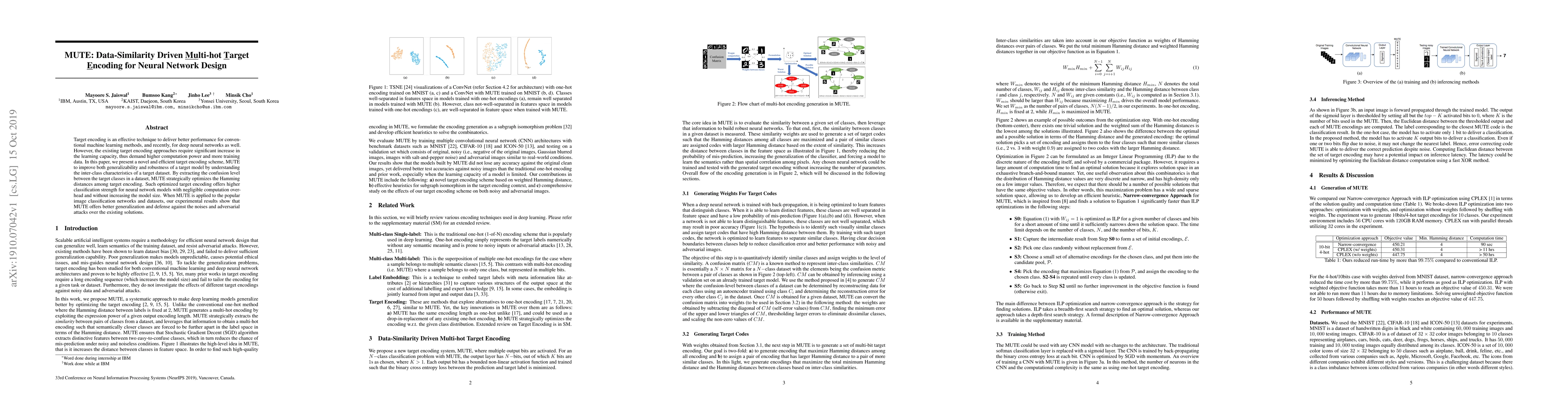 A new target encoding scheme called MUTE improves neural network performance by optimizing Hamming distances among classes based on dataset characteristics, leading to better generalization and defense against adversarial attacks.