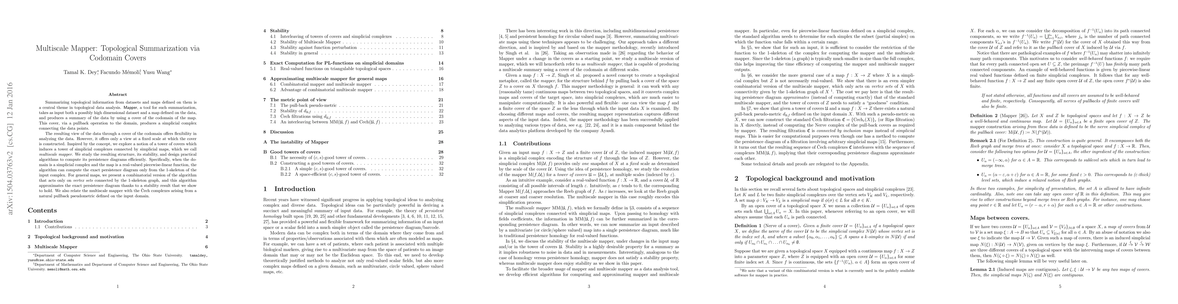 The paper introduces the Multiscale Mapper, a framework for topological summarization of data and maps using a tower of covers, providing flexibility in data analysis and stability in persistence diagrams.