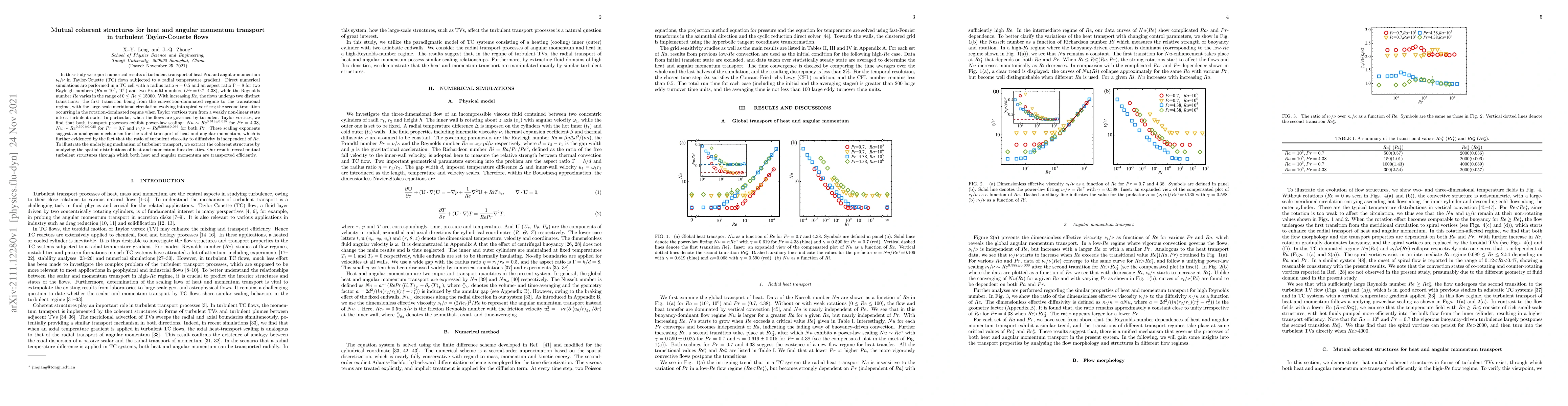 This study investigates turbulent transport of heat and angular momentum in Taylor-Couette flows using direct numerical simulations. It finds that both transport processes exhibit power-law scaling and suggests an analogous mechanism for their radial transport, evidenced by mutual coherent structures identified through spatial flux density analysis.