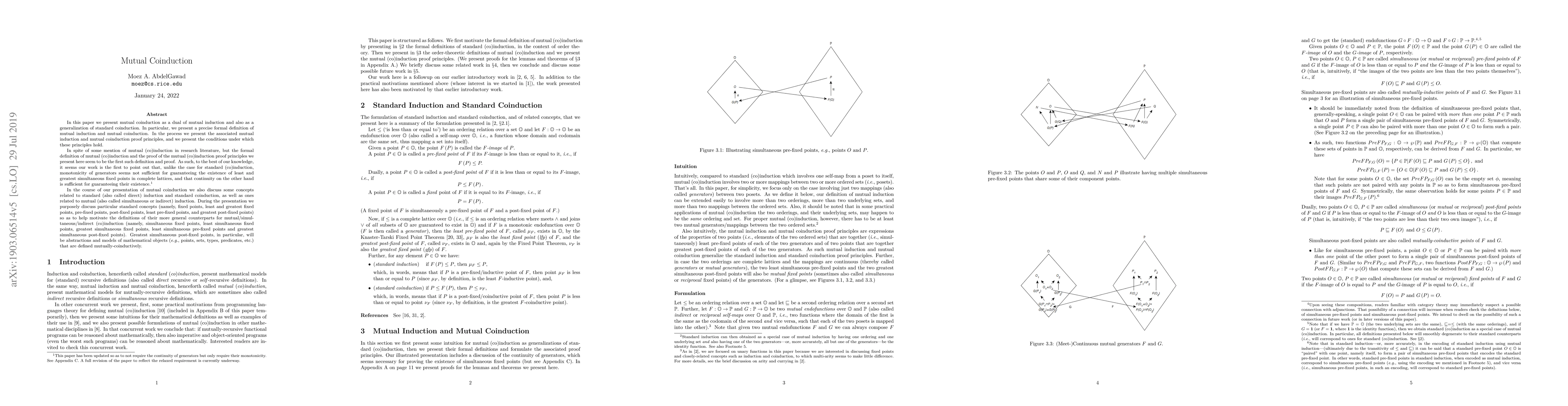 This paper introduces mutual coinduction as a dual to mutual induction and a generalization of standard coinduction, providing formal definitions and proof principles for both. It highlights that monotonicity of mutual generators, rather than continuity, is sufficient for ensuring the existence of least and greatest simultaneous fixed points in complete lattices. The paper also discusses related concepts of standard induction and coinduction to motivate the broader mutual forms.