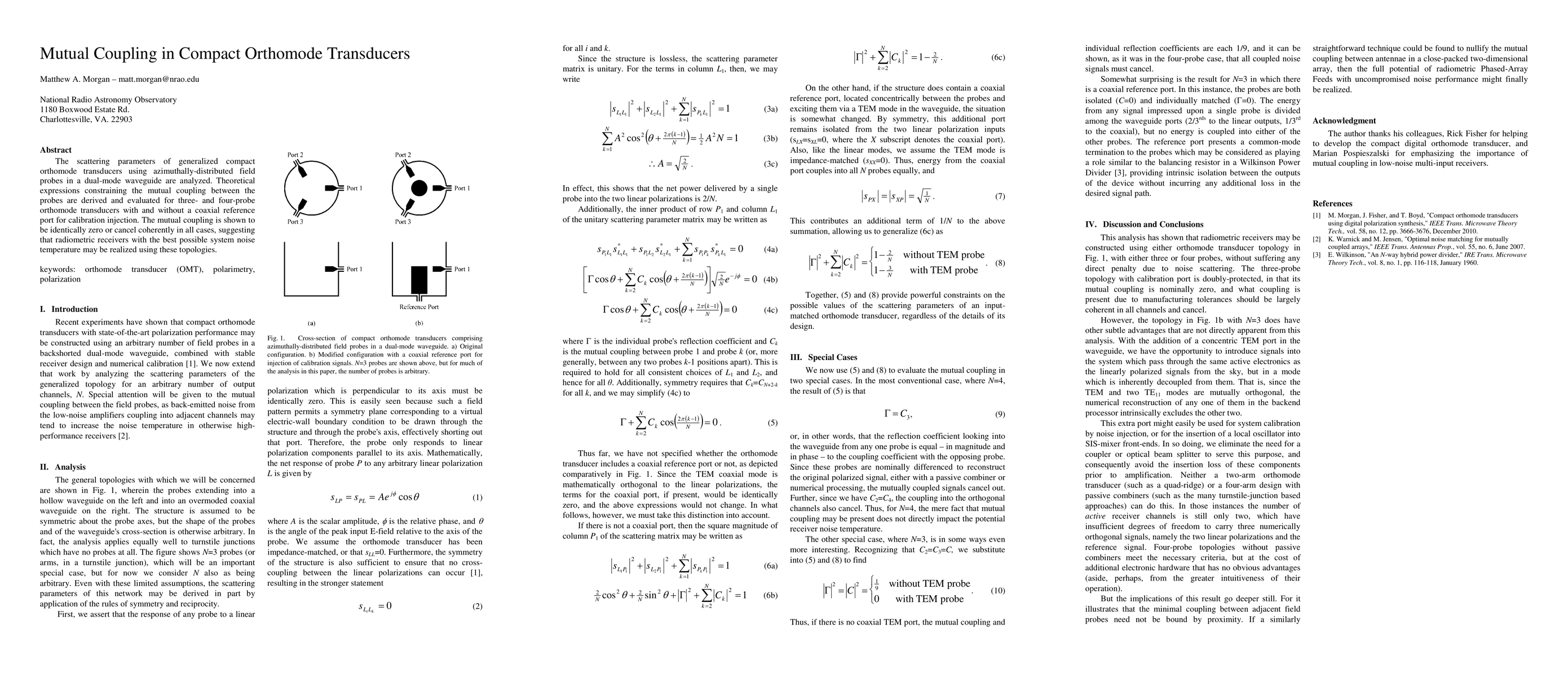 The scattering parameters of generalized compact orthomode transducers using azimuthally-distributed field probes in a dual-mode waveguide are analyzed. Theoretical expressions constraining the mutual coupling between the probes are derived and evaluated for three- and four-probe orthomode transducers with and without a coaxial reference port for calibration injection. The mutual coupling is shown to be identically zero or cancel coherently in all cases, suggesting that radiometric receivers with the best possible system noise temperature may be realized using these topologies.