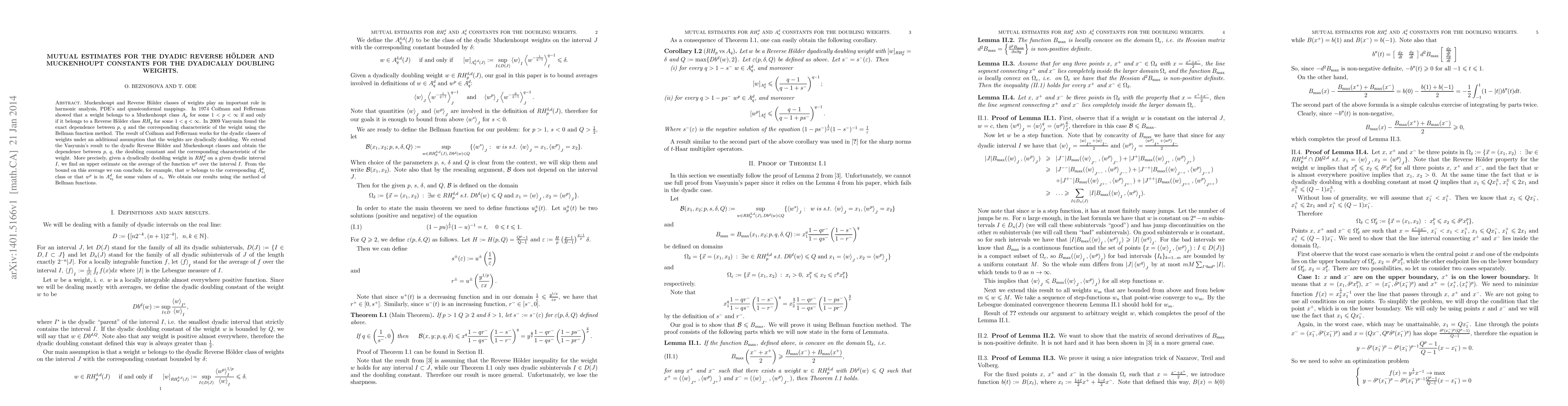 This paper extends the relationship between dyadic Reverse Hölder and Muckenhoupt classes for dyadically doubling weights, establishing a dependence between the exponents $p$, $q$, the doubling constant, and the weight's characteristic. The results are derived using the Bellman function method, providing estimates for the average of $w^q$ over dyadic intervals.