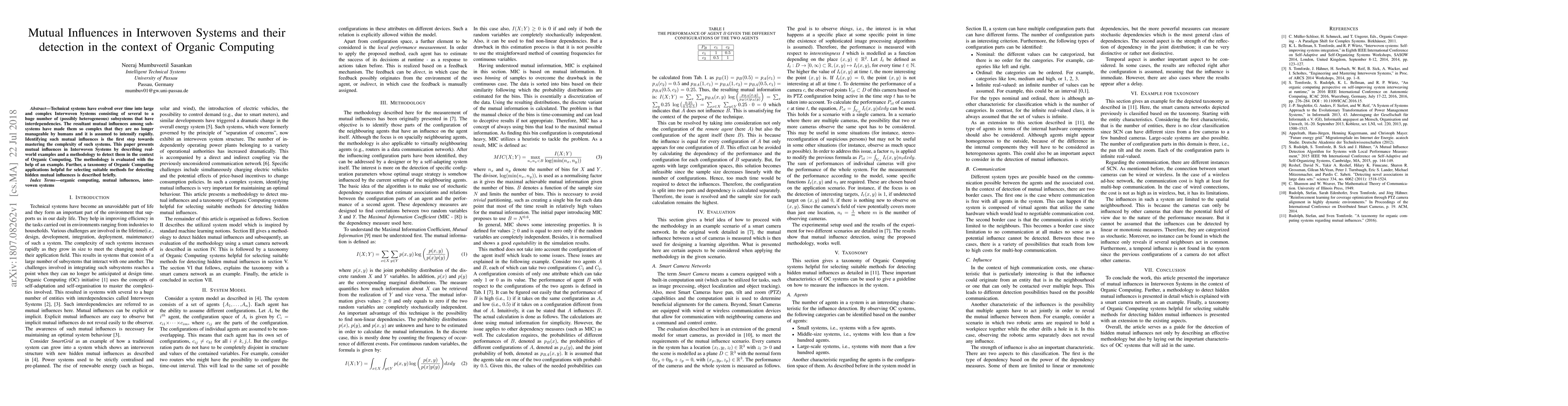 Technical systems have evolved over time into large and complex Interwoven Systems consisting of several to a huge number of (possibly heterogeneous) subsystems that have interdependencies. The resultant mutual influences among subsystems have made them so complex that they are no longer manageable by humans and it is assumed to intensify rapidly. Identifying such mutual influences is the first step towards mastering the complexity of such systems. This paper presents mutual influences in Interwoven Systems by describing real-world examples and a methodology to detect them in the context of Organic Computing. The methodology is evaluated with the help of an example. Further, a taxonomy of Organic Computing applications helpful for selecting suitable methods for detecting hidden mutual influences is described briefly.