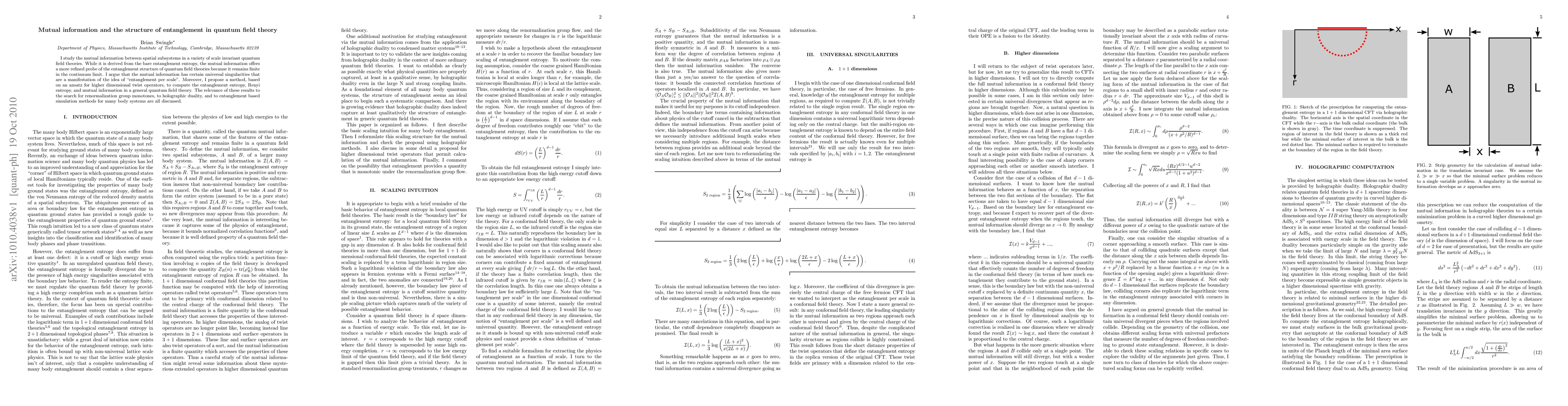 The research investigates mutual information in quantum field theories, utilizing holographic duality, scale invariance, and an ansatz for higher-dimensional twist operators to compute entanglement entropy, Renyi entropy, and mutual information.