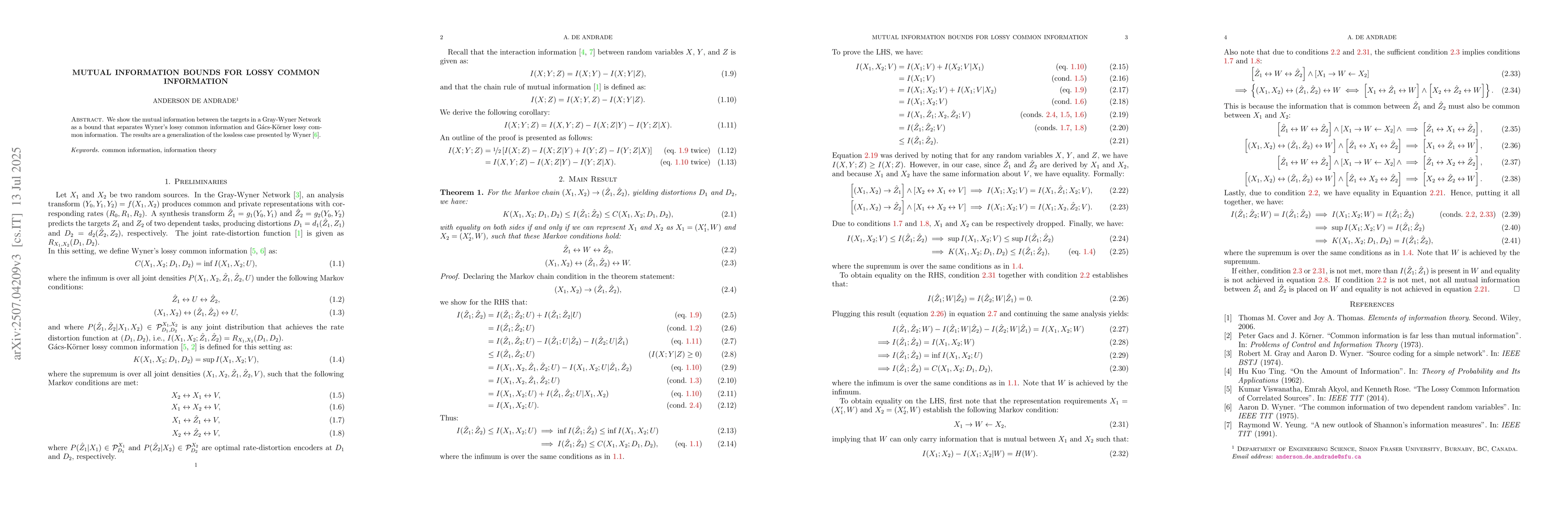 We show the mutual information between the targets in a Gray-Wyner Network as a bound that separates Wyner's lossy common information and G\'acs-K\"orner lossy common information. The results are a generalization of the lossless case presented by Wyner (1975).