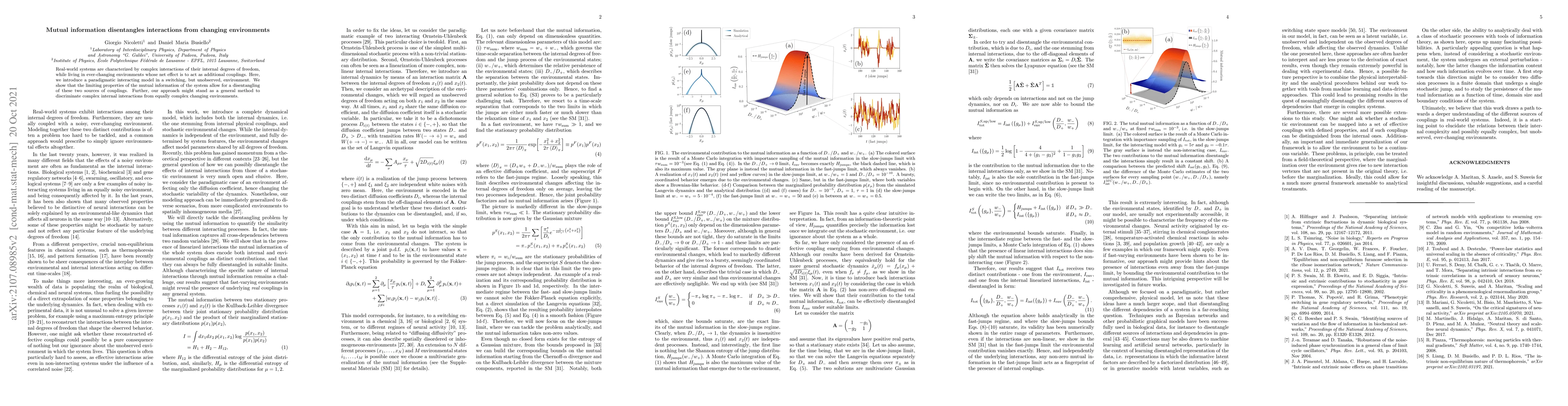 Real-world systems are characterized by complex interactions of their internal degrees of freedom, while living in ever-changing environments whose net effect is to act as additional couplings. Here, we introduce a paradigmatic interacting model in a switching, but unobserved, environment. We show that the limiting properties of the mutual information of the system allow for a disentangling of these two sources of couplings. Further, our approach might stand as a general method to discriminate complex internal interactions from equally complex changing environments.