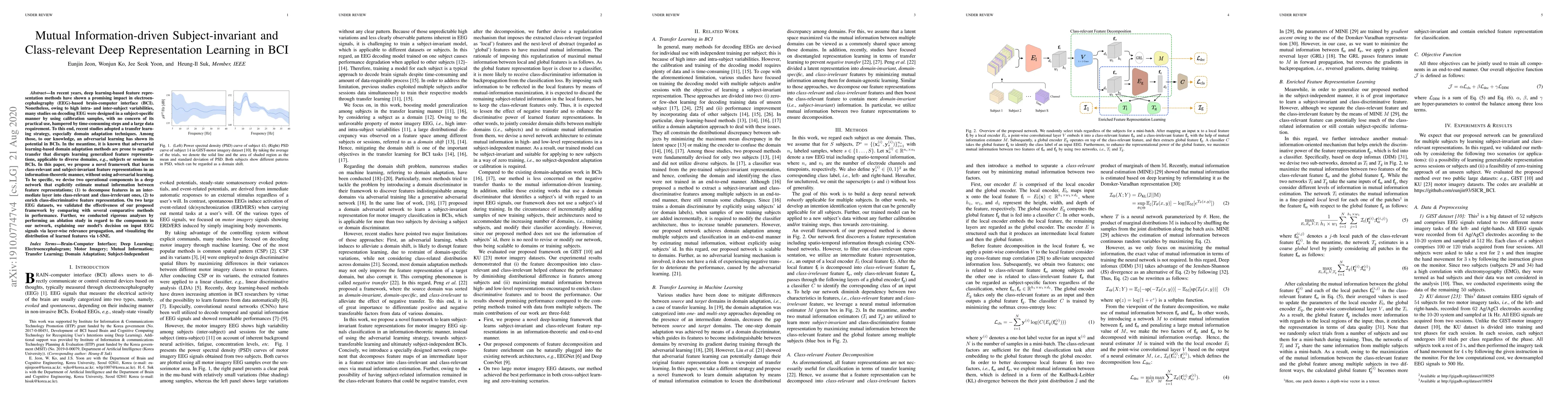 A new framework for brain-computer interface (BCI) learning uses mutual information to create class-relevant and subject-invariant feature representations without adversarial learning, offering a promising approach to improve BCI performance.
