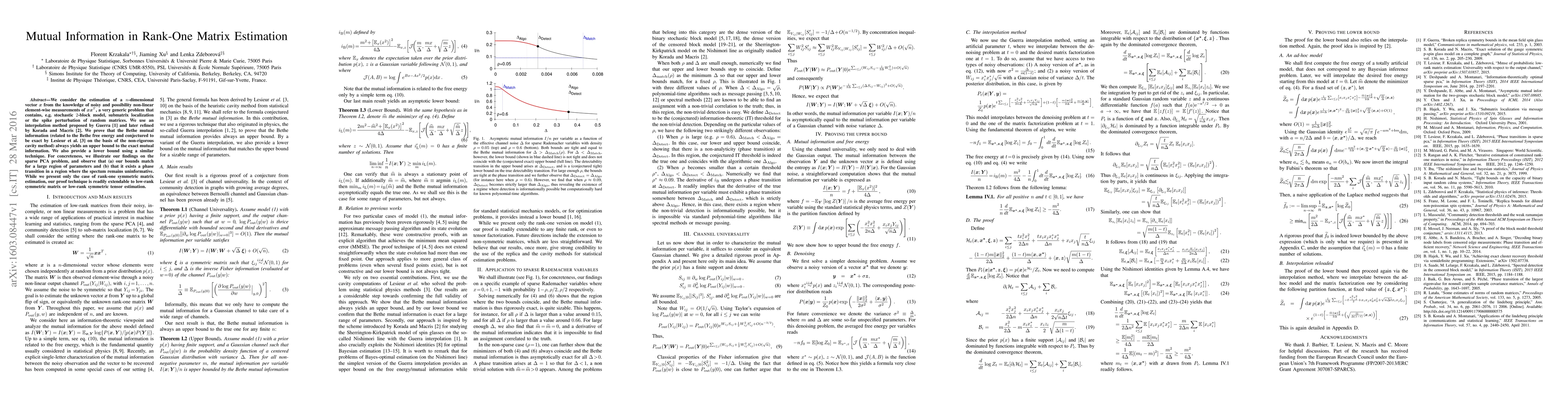 This paper explores the estimation of a vector from noisy, possibly non-linear measurements of its outer product, using Bethe mutual information. It establishes upper and lower bounds for mutual information and demonstrates their applicability to sparse PCA, showing a phase transition in parameter regions.