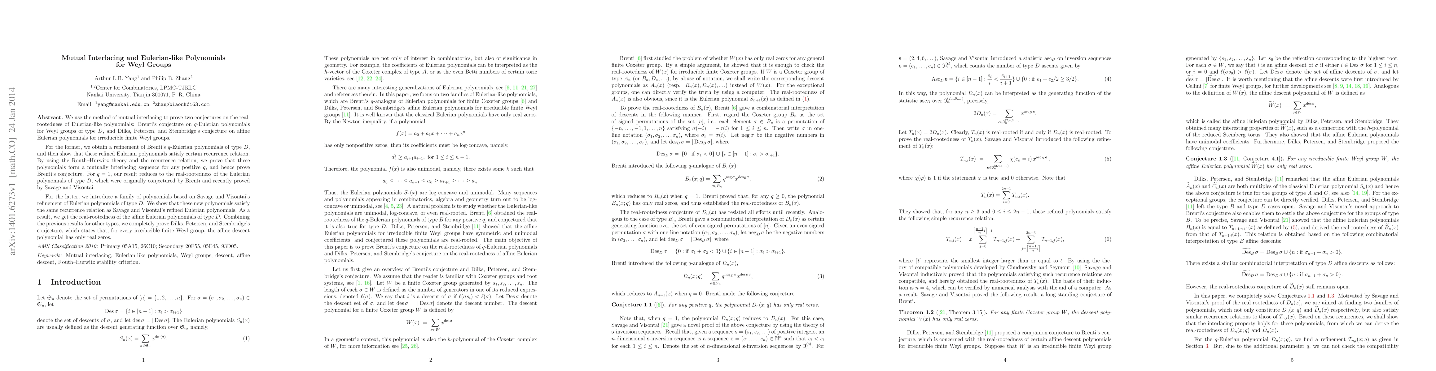 We use the method of mutual interlacing to prove two conjectures on the real-rootedness of Eulerian-like polynomials: Brenti's conjecture on $q$-Eulerian polynomials for Weyl groups of type $D$, and Dilks, Petersen, and Stembridge's conjecture on affine Eulerian polynomials for irreducible finite Weyl groups. For the former, we obtain a refinement of Brenti's $q$-Eulerian polynomials of type $D$, and then show that these refined Eulerian polynomials satisfy certain recurrence relation. By using the Routh--Hurwitz theory and the recurrence relation, we prove that these polynomials form a mutually interlacing sequence for any positive $q$, and hence prove Brenti's conjecture. For $q=1$, our result reduces to the real-rootedness of the Eulerian polynomials of type $D$, which were originally conjectured by Brenti and recently proved by Savage and Visontai. For the latter, we introduce a family of polynomials based on Savage and Visontai's refinement of Eulerian polynomials of type $D$. We show that these new polynomials satisfy the same recurrence relation as Savage and Visontai's refined Eulerian polynomials. As a result, we get the real-rootedness of the affine Eulerian polynomials of type $D$. Combining the previous results for other types, we completely prove Dilks, Petersen, and Stembridge's conjecture, which states that, for every irreducible finite Weyl group, the affine descent polynomial has only real zeros.