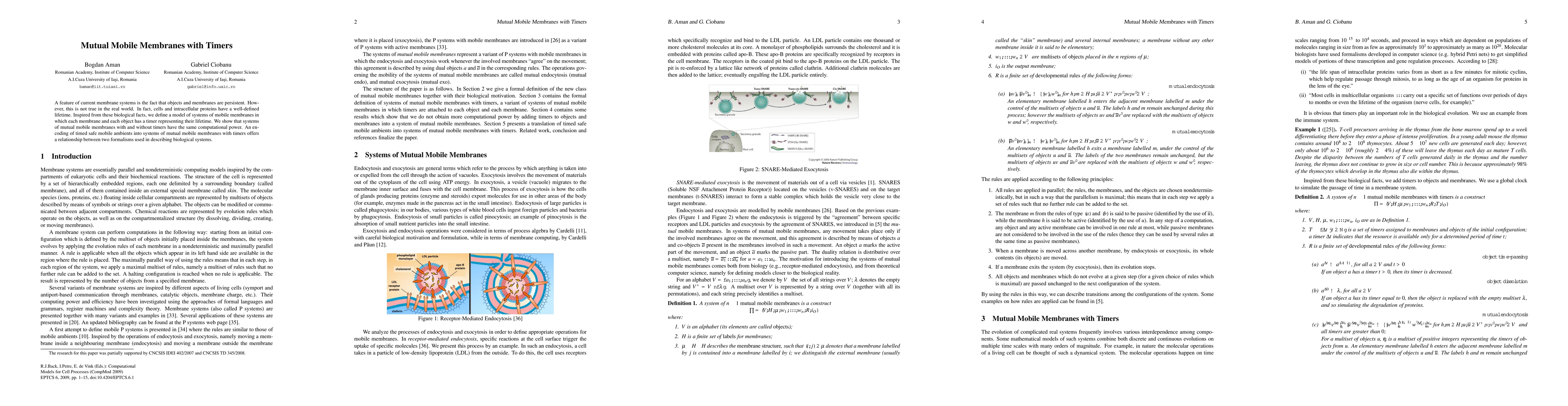 A feature of current membrane systems is the fact that objects and membranes are persistent. However, this is not true in the real world. In fact, cells and intracellular proteins have a well-defined lifetime. Inspired from these biological facts, we define a model of systems of mobile membranes in which each membrane and each object has a timer representing their lifetime. We show that systems of mutual mobile membranes with and without timers have the same computational power. An encoding of timed safe mobile ambients into systems of mutual mobile membranes with timers offers a relationship between two formalisms used in describing biological systems.