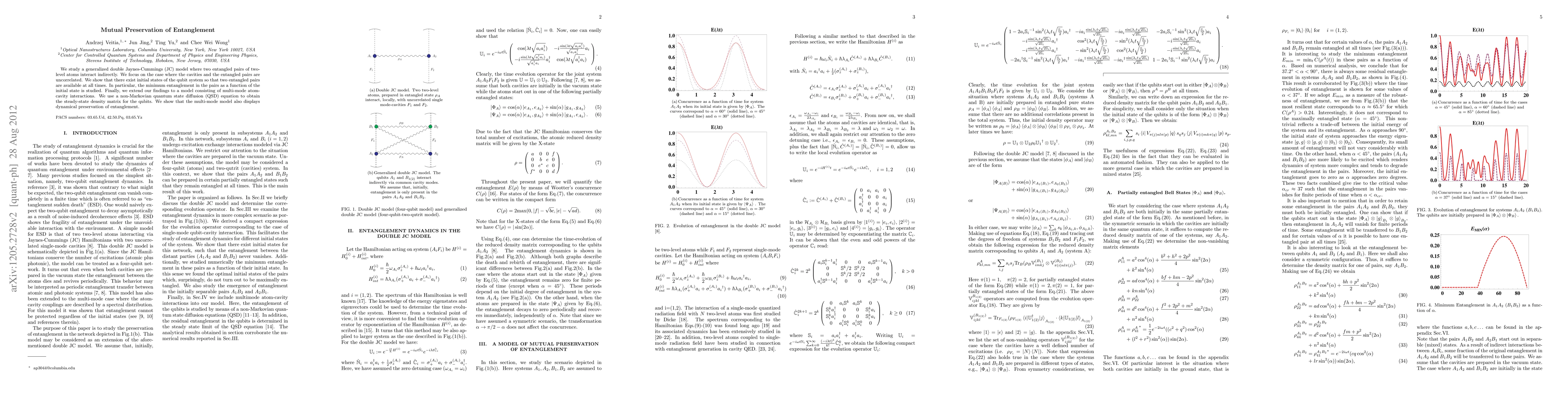 Researchers studied a model where entangled pairs of atoms interact with each other through cavities, showing that entanglement can persist over time in certain initial conditions. The findings were extended to a multi-mode model, demonstrating dynamical preservation of entanglement.