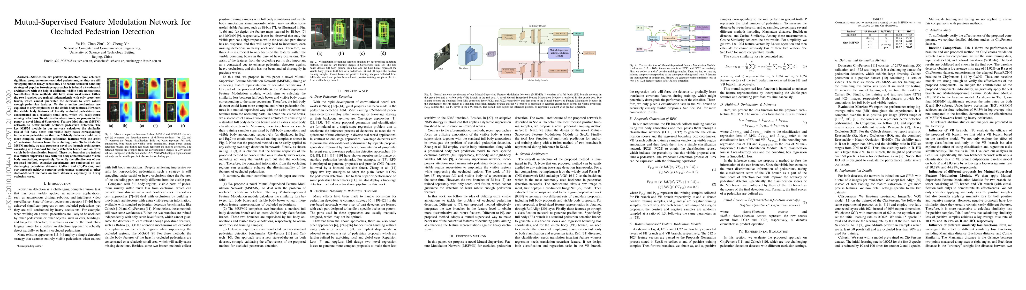 The paper proposes a Mutual-Supervised Feature Modulation (MSFM) network to enhance detection of occluded pedestrians. The MSFM module leverages similarity loss between full and visible body features to improve feature learning, while a two-branch architecture with mutual supervision achieves superior performance on occluded pedestrian detection compared to state-of-the-art methods.