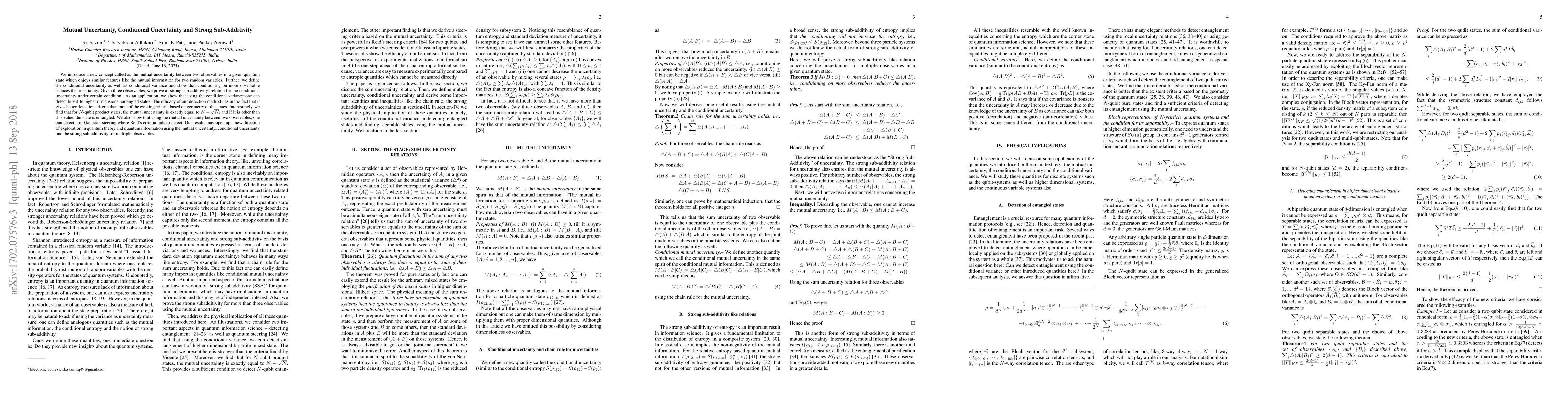 We introduce a new concept called as the mutual uncertainty between two observables in a given quantum state which enjoys similar features like the mutual information for two random variables. Further, we define the conditional uncertainty as well as conditional variance and show that conditioning on more observable reduces the uncertainty. Given three observables, we prove a 'strong sub-additivity' relation for the conditional uncertainty under certain condition. As an application, we show that using the conditional variance one can detect bipartite higher dimensional entangled states. The efficacy of our detection method lies in the fact that it gives better detection criteria than most of the existing criteria based on geometry of the states. Interestingly, we find that for $N$-qubit product states, the mutual uncertainty is exactly equal to $N-\sqrt{N}$, and if it is other than this value, the state is entangled. We also show that using the mutual uncertainty between two observables, one can detect non-Gaussian steering where Reid's criteria fails to detect. Our results may open up a new direction of exploration in quantum theory and quantum information using the mutual uncertainty, conditional uncertainty and the strong sub-additivity for multiple observables.