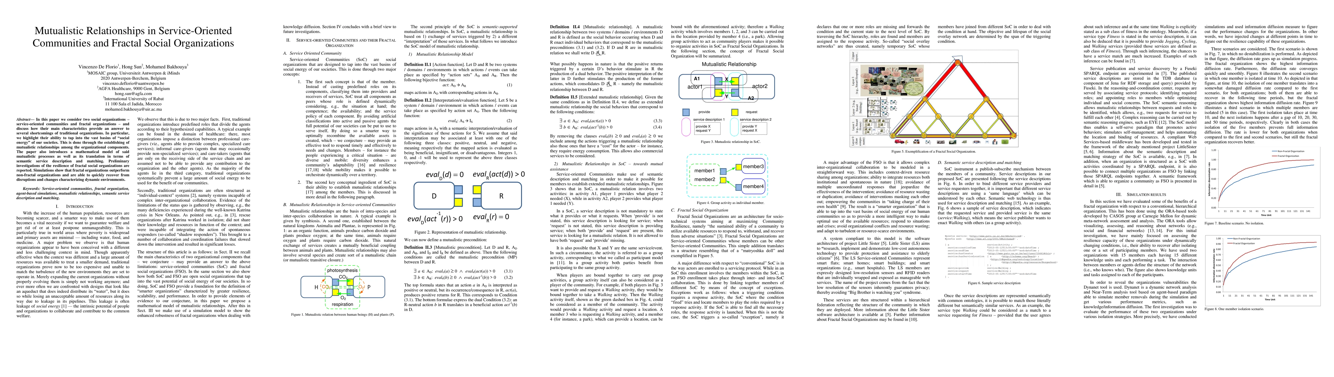 In this paper we consider two social organizations -- service-oriented communities and fractal organizations -- and discuss how their main characteristics provide an answer to several shortcomings of traditional organizations. In particular, we highlight their ability to tap into the vast basins of "social energy" of our societies. This is done through the establishing of mutualistic relationships among the organizational components. The paper also introduces a mathematical model of said mutualistic processes as well as its translation in terms of semantic service description and matching. Preliminary investigations of the resilience of fractal social organizations are reported. Simulations show that fractal organizations outperform non-fractal organizations and are able to quickly recover from disruptions and changes characterizing dynamic environments.