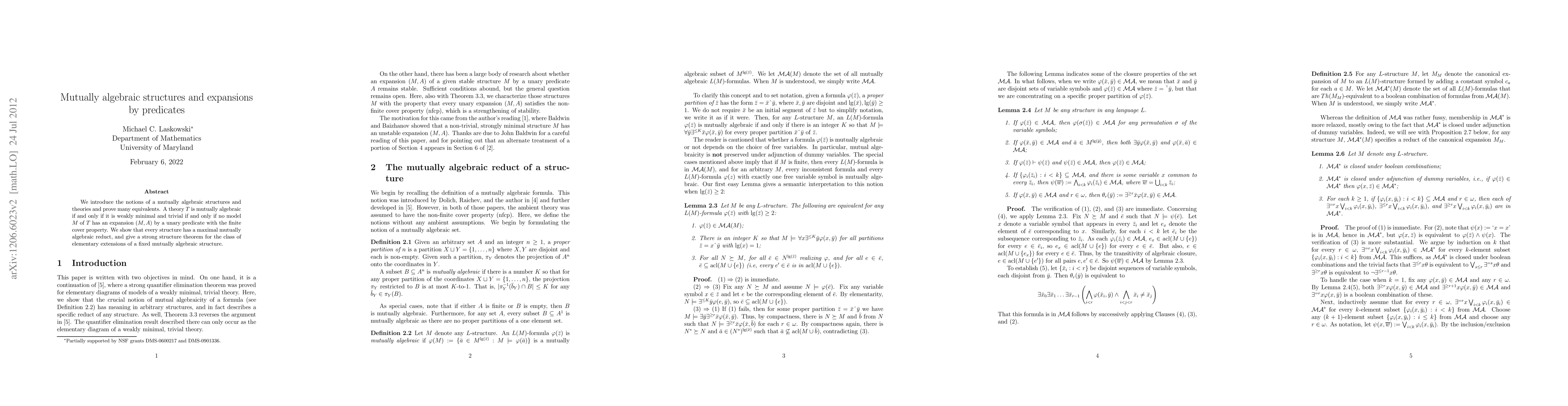 Researchers introduce a new concept of mutually algebraic structures and prove its equivalence to weak minimality and triviality, showing that every structure has a maximal reduct and establishing a strong theorem for elementary extensions.