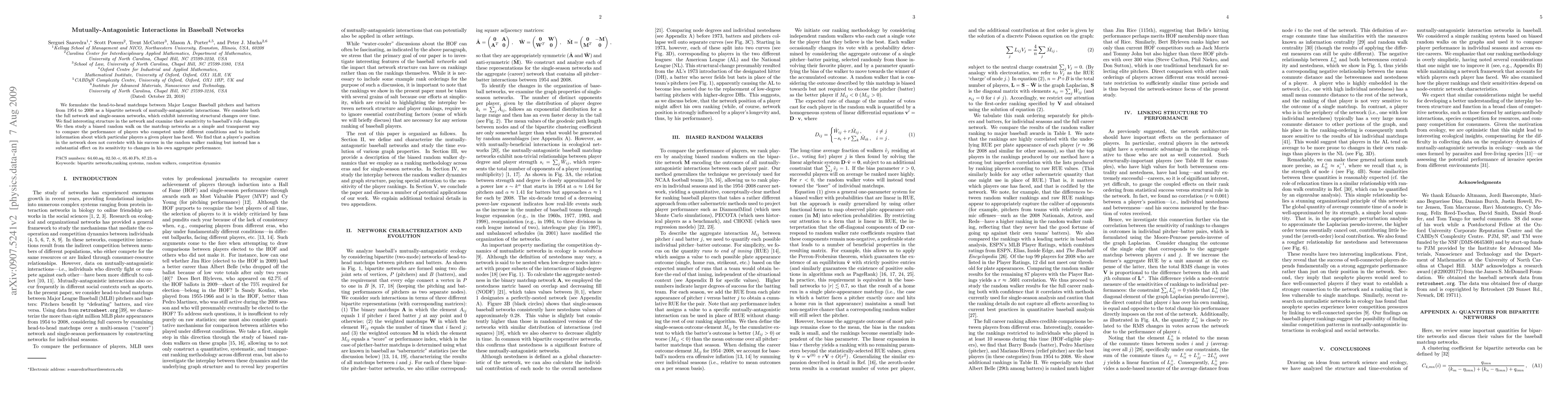 We formulate the head-to-head matchups between Major League Baseball pitchers and batters from 1954 to 2008 as a bipartite network of mutually-antagonistic interactions. We consider both the full network and single-season networks, which exhibit interesting structural changes over time. We find interesting structure in the network and examine their sensitivity to baseball's rule changes. We then study a biased random walk on the matchup networks as a simple and transparent way to compare the performance of players who competed under different conditions and to include information about which particular players a given player has faced. We find that a player's position in the network does not correlate with his success in the random walker ranking but instead has a substantial effect on its sensitivity to changes in his own aggregate performance.