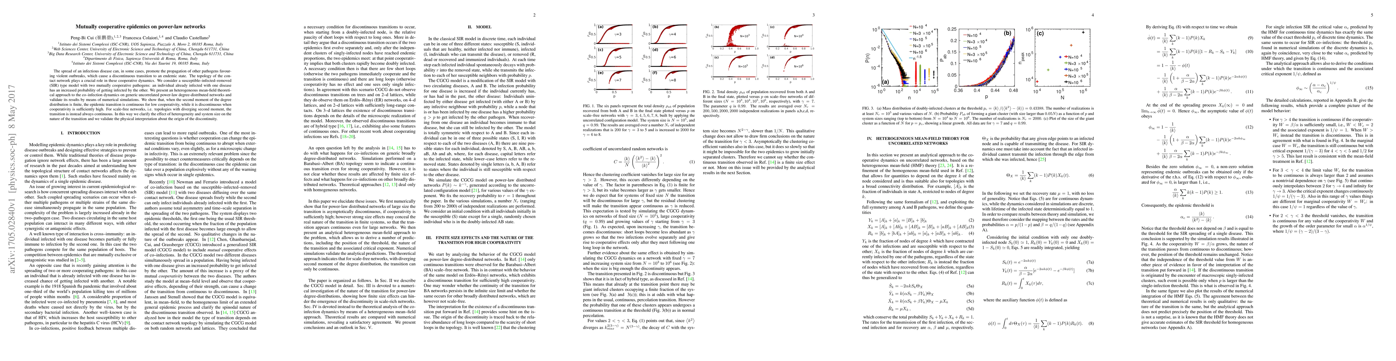 Research shows that when two infectious diseases spread together on power-law networks, high levels of cooperation can lead to a discontinuous transition from an outbreak to an endemic state. The nature of this transition depends on the level of cooperation and the size of the network.