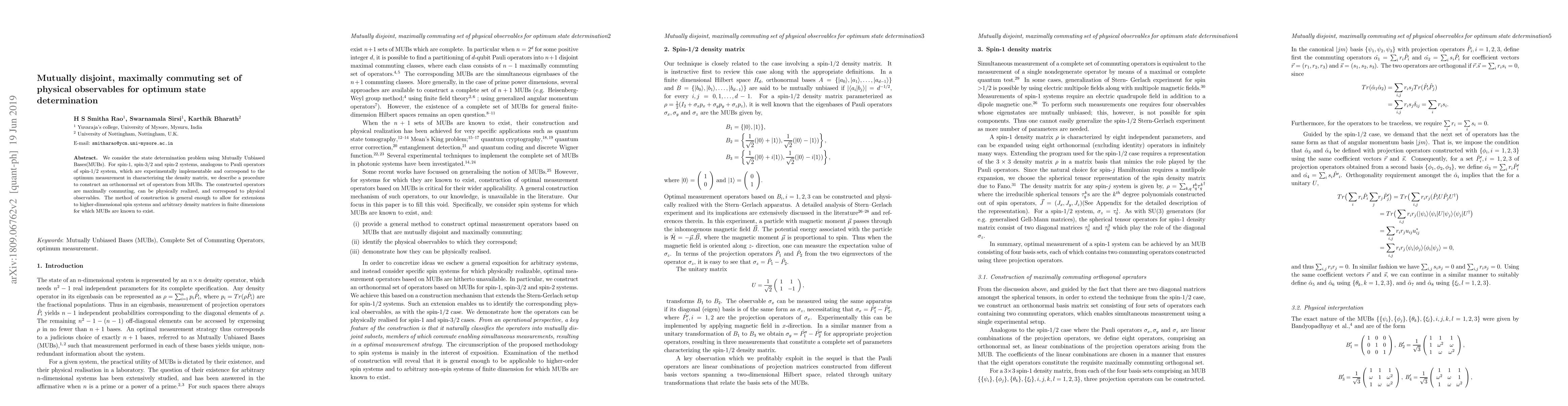 We consider the state determination problem using Mutually Unbiased Bases(MUBs). For spin-1, spin-3/2 and spin-2 systems, analogous to Pauli operators of spin-1/2 system, which are experimentally implementable and correspond to the optimum measurement in characterizing the density matrix, we describe a procedure to construct an orthonormal set of operators from MUBs. The constructed operators are maximally commuting, can be physically realized, and correspond to physical observables. The method of construction is general enough to allow for extensions to higher-dimensional spin systems and arbitrary density matrices in finite dimensions for which MUBs are known to exist.