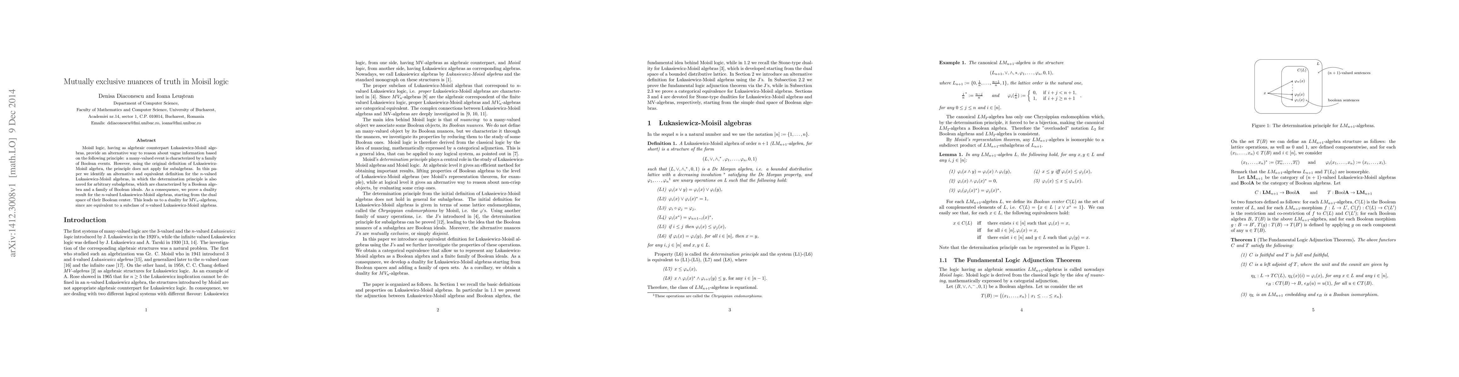 Moisil logic, having as algebraic counterpart \L ukasiewicz-Moisil algebras, provide an alternative way to reason about vague information based on the following principle: a many-valued event is characterized by a family of Boolean events. However, using the original definition of \L ukasiewicz-Moisil algebra, the principle does not apply for subalgebras. In this paper we identify an alternative and equivalent definition for the $n$-valued \L ukasiewicz-Moisil algebras, in which the determination principle is also saved for arbitrary subalgebras, which are characterized by a Boolean algebra and a family of Boolean ideals. As a consequence, we prove a duality result for the $n$-valued \L ukasiewicz-Moisil algebras, starting from the dual space of their Boolean center. This leads us to a duality for MV$_n$-algebras, since are equivalent to a subclass of $n$-valued \L ukasiewicz-Moisil algebras.