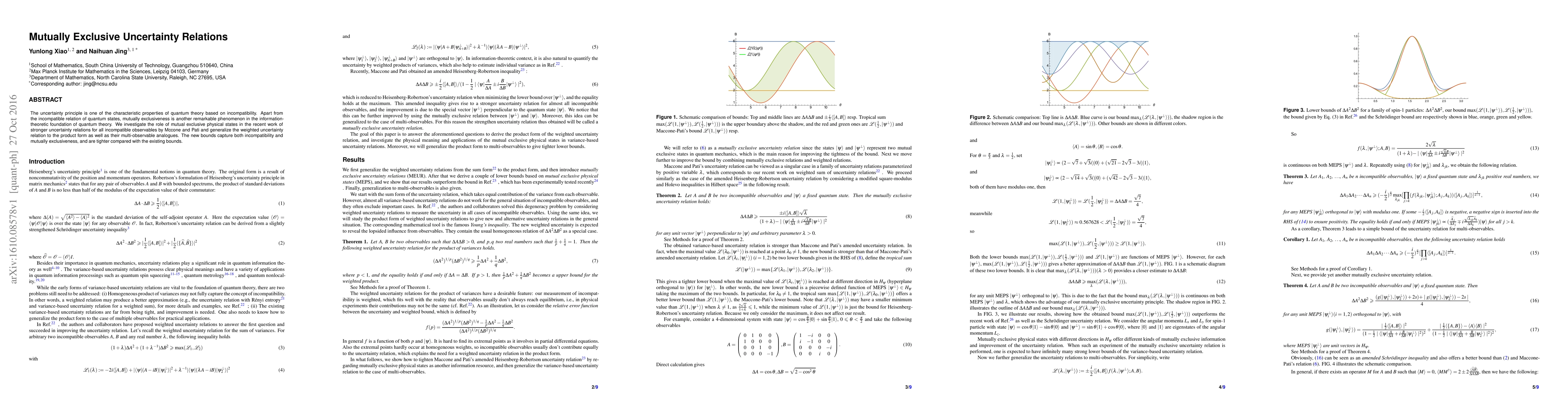 This paper explores the role of mutually exclusive physical states in stronger uncertainty relations, generalizing the weighted uncertainty relation to product form and multi-observable analogues. The new bounds provide tighter limits that account for both incompatibility and mutual exclusivity compared to existing bounds.