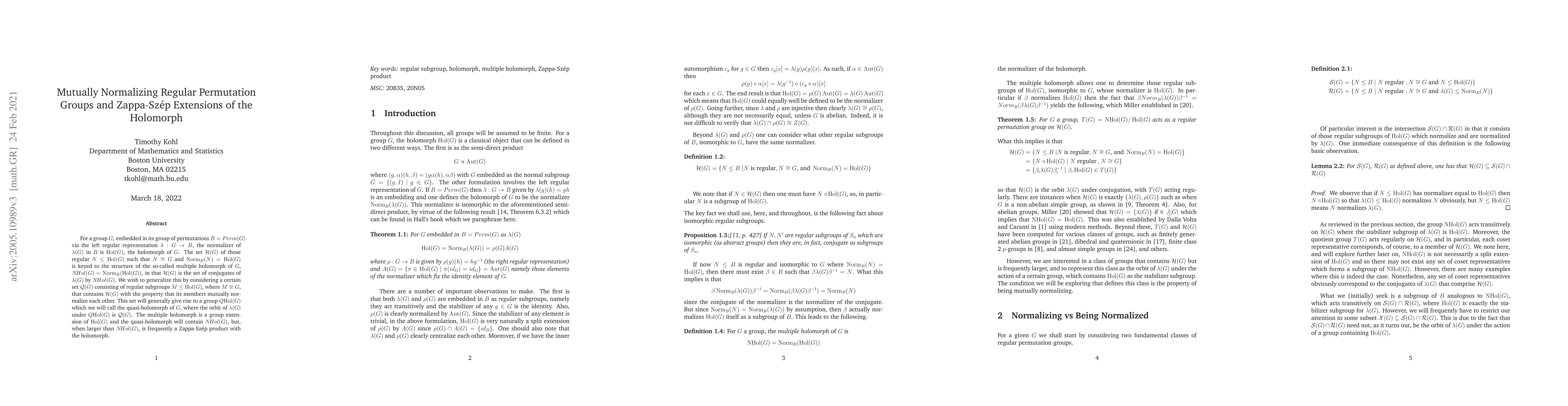 Researchers explore a generalization of the holomorph of a group, introducing the concept of the quasi-holomorph, which contains regular subgroups that mutually normalize each other.