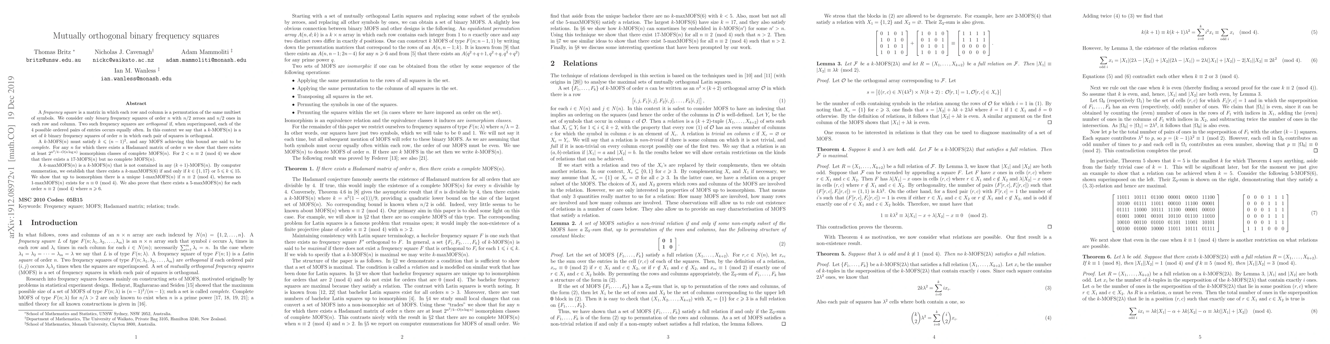 context we say that a $k$-MOFS$(n)$ is a set of $k$ binary frequency squares of