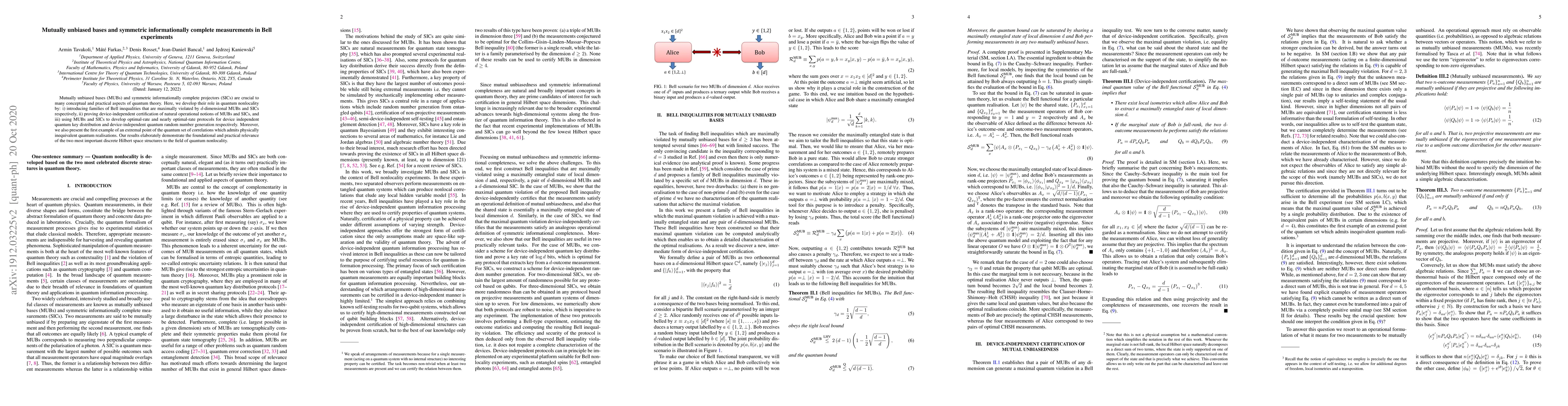 Mutually unbiased bases (MUBs) and symmetric informationally complete projectors (SICs) are crucial to many conceptual and practical aspects of quantum theory. Here, we develop their role in quantum nonlocality by: i) introducing families of Bell inequalities that are maximally violated by $d$-dimensional MUBs and SICs respectively, ii) proving device-independent certification of natural operational notions of MUBs and SICs, and iii) using MUBs and SICs to develop optimal-rate and nearly optimal-rate protocols for device independent quantum key distribution and device-independent quantum random number generation respectively. Moreover, we also present the first example of an extremal point of the quantum set of correlations which admits physically inequivalent quantum realisations. Our results elaborately demonstrate the foundational and practical relevance of the two most important discrete Hilbert space structures to the field of quantum nonlocality.