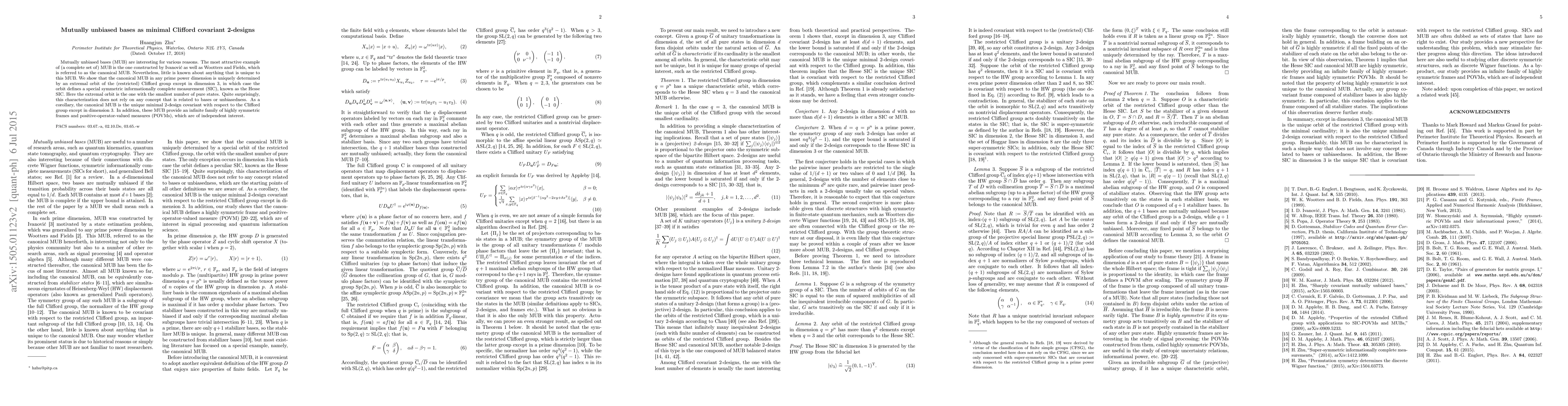 This paper demonstrates that the canonical mutually unbiased bases (MUB) in prime power dimensions are uniquely determined by an extremal orbit of the Clifford group, except in dimension 3 where it defines a special symmetric informationally complete measurement (SIC). The characterization does not depend on the concept of bases or unbiasedness, highlighting the unique minimal 2-design covariant with respect to the Clifford group.