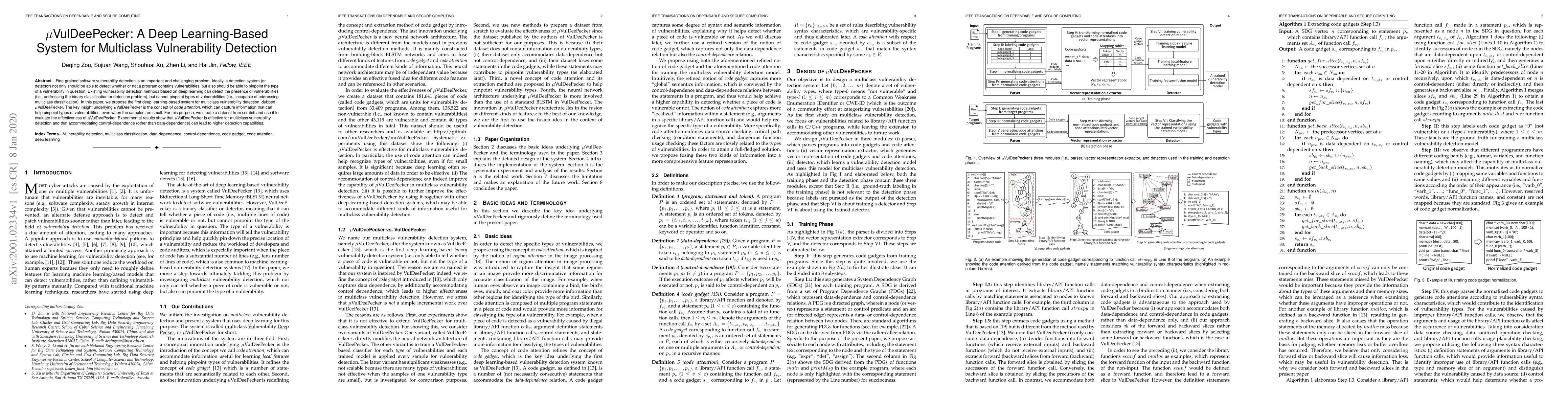 $\mu$VulDeePecker is a novel deep learning system designed for multiclass vulnerability detection, addressing the limitation of existing binary detection methods. It leverages code attention to pinpoint specific types of vulnerabilities, demonstrating superior performance in multiclass classification tasks.
