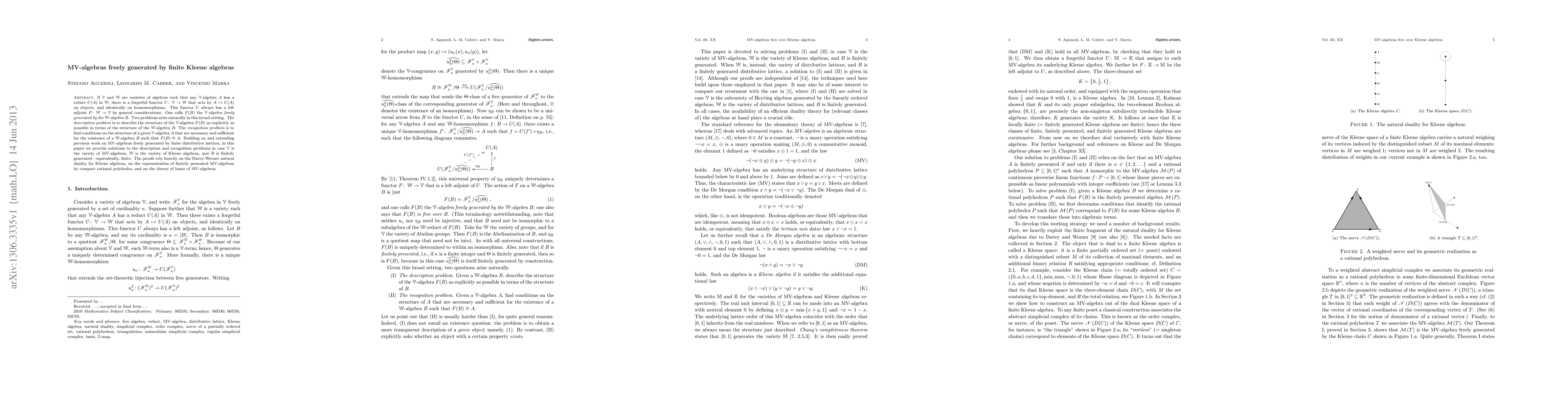 If V and W are varieties of algebras such that any V-algebra A has a reduct U(A) in W, there is a forgetful functor U: V->W that acts by A |-> U(A) on objects, and identically on homomorphisms. This functor U always has a left adjoint F: W->V by general considerations. One calls F(B) the V-algebra freely generated by the W-algebra B. Two problems arise naturally in this broad setting. The description problem is to describe the structure of the V-algebra F(B) as explicitly as possible in terms of the structure of the W-algebra B. The recognition problem is to find conditions on the structure of a given V-algebra A that are necessary and sufficient for the existence of a W-algebra B such that F(B) is isomorphic to A. Building on and extending previous work on MV-algebras freely generated by finite distributive lattices, in this paper we provide solutions to the description and recognition problems in case V is the variety of MV-algebras, W is the variety of Kleene algebras, and B is finitely generated--equivalently, finite. The proofs rely heavily on the Davey-Werner natural duality for Kleene algebras, on the representation of finitely presented MV-algebras by compact rational polyhedra, and on the theory of bases of MV-algebras.