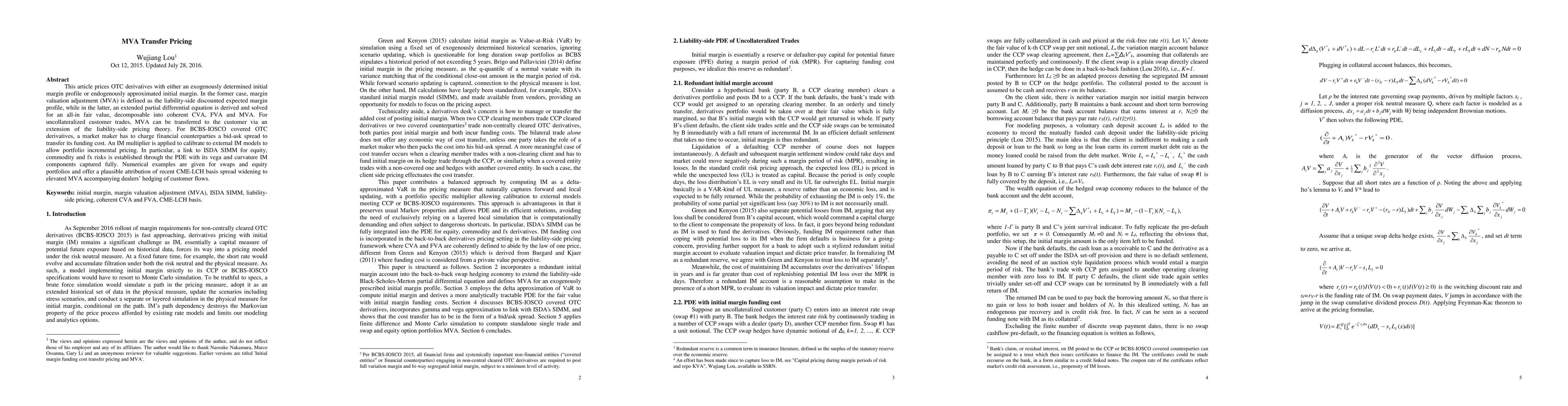 This paper develops pricing models for OTC derivatives incorporating margin valuation adjustment (MVA), distinguishing between exogenous and endogenous initial margin profiles. It provides a comprehensive framework for pricing and transferring MVA, linking to market models and explaining recent market basis spread changes.