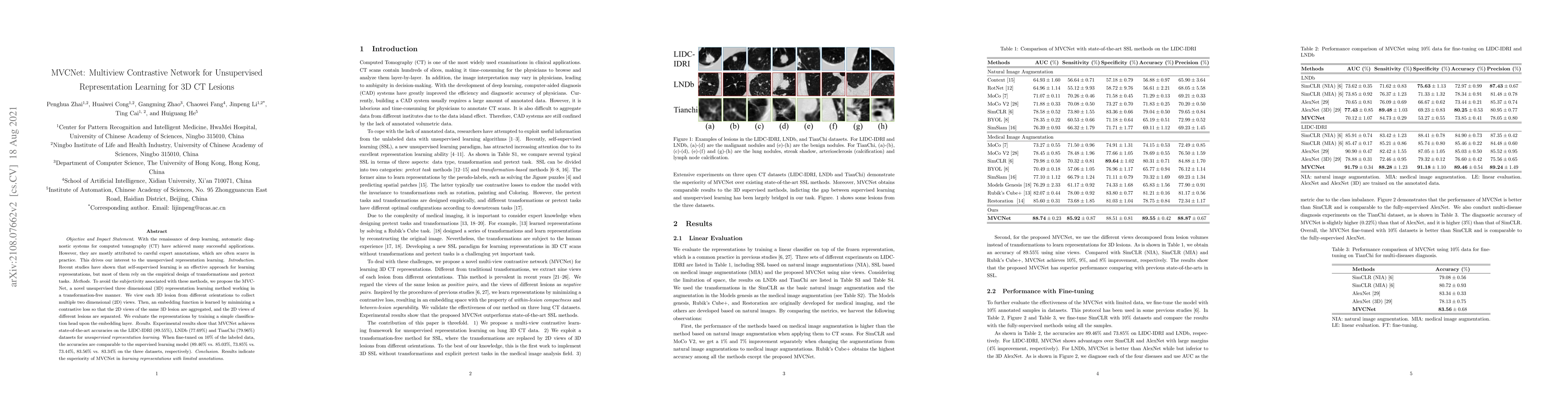 MVCNet is an unsupervised 3D representation learning method for CT lesion diagnosis that leverages multiview contrastive learning without requiring transformation-based pretext tasks. It achieves state-of-the-art performance on several datasets and demonstrates comparable accuracy to supervised models when fine-tuned on limited labeled data.