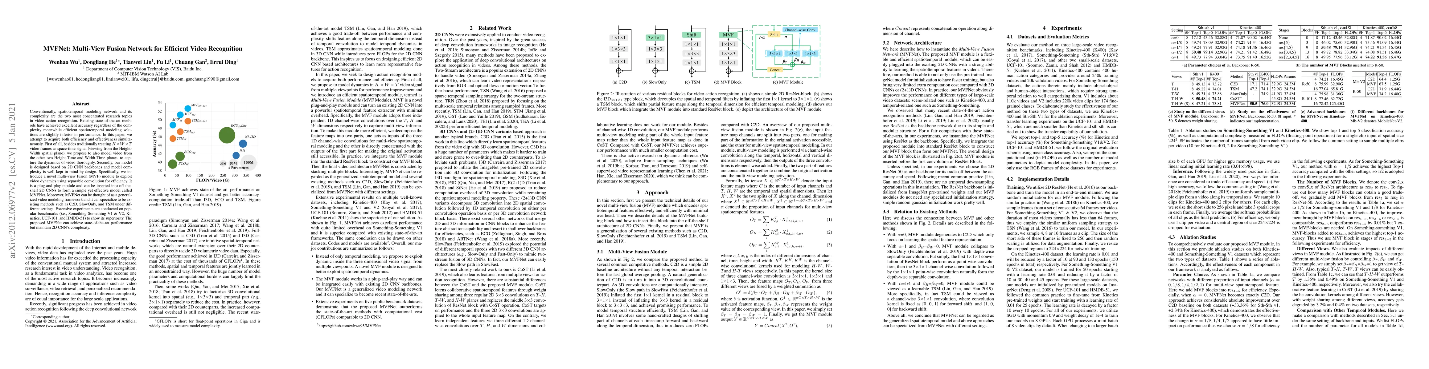 Conventionally, spatiotemporal modeling network and its complexity are the two most concentrated research topics in video action recognition. Existing state-of-the-art methods have achieved excellent accuracy regardless of the complexity meanwhile efficient spatiotemporal modeling solutions are slightly inferior in performance. In this paper, we attempt to acquire both efficiency and effectiveness simultaneously. First of all, besides traditionally treating H x W x T video frames as space-time signal (viewing from the Height-Width spatial plane), we propose to also model video from the other two Height-Time and Width-Time planes, to capture the dynamics of video thoroughly. Secondly, our model is designed based on 2D CNN backbones and model complexity is well kept in mind by design. Specifically, we introduce a novel multi-view fusion (MVF) module to exploit video dynamics using separable convolution for efficiency. It is a plug-and-play module and can be inserted into off-the-shelf 2D CNNs to form a simple yet effective model called MVFNet. Moreover, MVFNet can be thought of as a generalized video modeling framework and it can specialize to be existing methods such as C2D, SlowOnly, and TSM under different settings. Extensive experiments are conducted on popular benchmarks (i.e., Something-Something V1 & V2, Kinetics, UCF-101, and HMDB-51) to show its superiority. The proposed MVFNet can achieve state-of-the-art performance with 2D CNN's complexity.