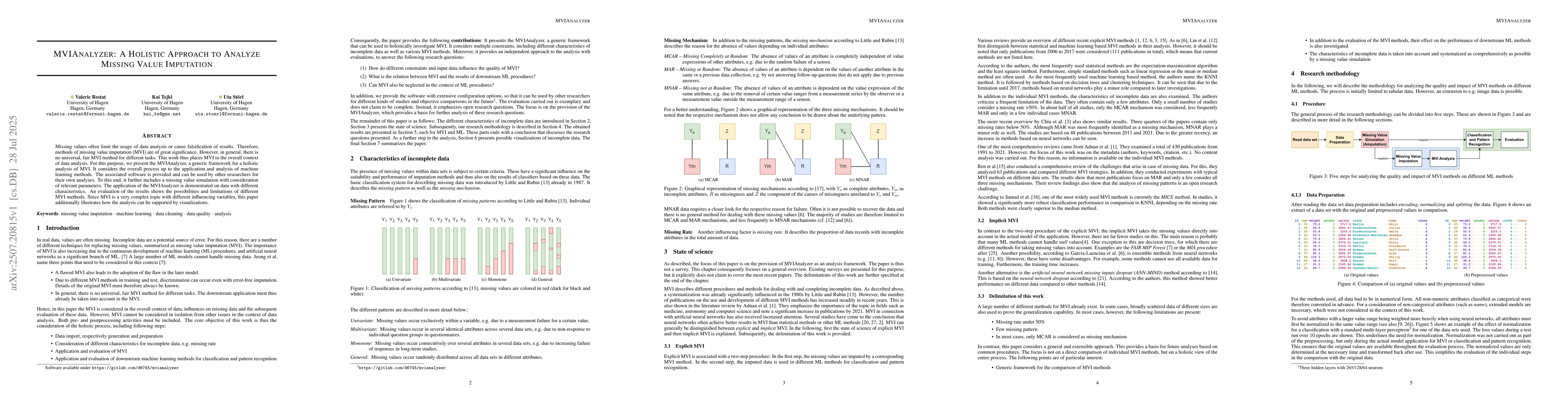 Missing values often limit the usage of data analysis or cause falsification of results. Therefore, methods of missing value imputation (MVI) are of great significance. However, in general, there is no universal, fair MVI method for different tasks. This work thus places MVI in the overall context of data analysis. For this purpose, we present the MVIAnalyzer, a generic framework for a holistic analysis of MVI. It considers the overall process up to the application and analysis of machine learning methods. The associated software is provided and can be used by other researchers for their own analyses. To this end, it further includes a missing value simulation with consideration of relevant parameters. The application of the MVIAnalyzer is demonstrated on data with different characteristics. An evaluation of the results shows the possibilities and limitations of different MVI methods. Since MVI is a very complex topic with different influencing variables, this paper additionally illustrates how the analysis can be supported by visualizations.