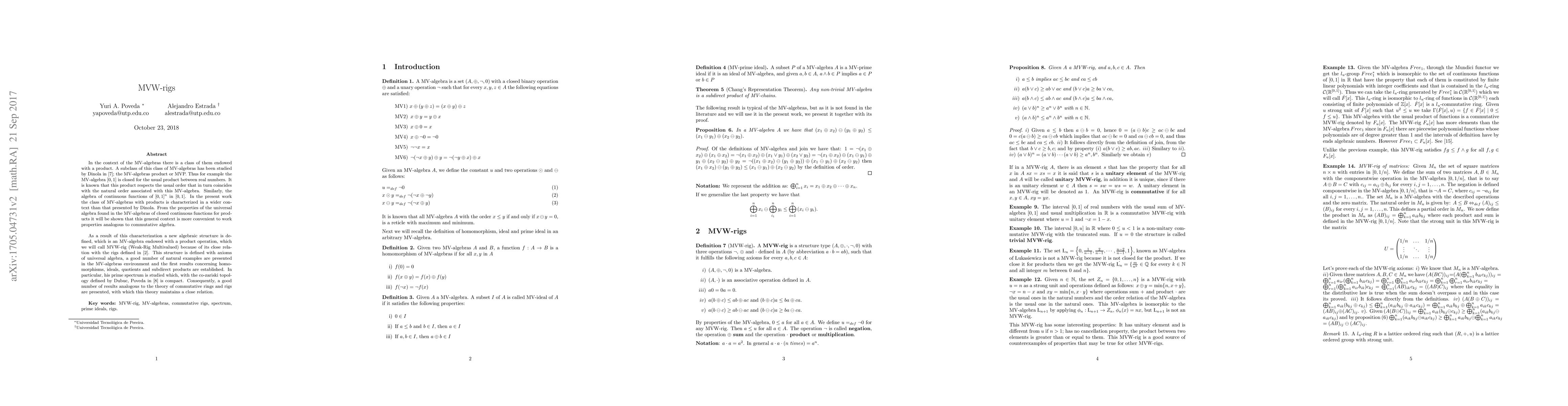 In this paper, a new algebraic structure is defined, which is a new MV-algebra that has a product operation, we will call it MVW-rig (Multivalued-weak rig). This structure is defined with universal algebra axioms, it is presented with a good amount of natural examples in the MV-algebra environment and the first results having to do with ideal, quotients, homomorphisms and subdirect product are established. In particular, its prime spectrum is studied, that with the co-Zariski topology it is compact. Consequently, a good number of results that are analogous to the theory of commutative rings and rigs are presented with which this theory keeps a close relationship to.
