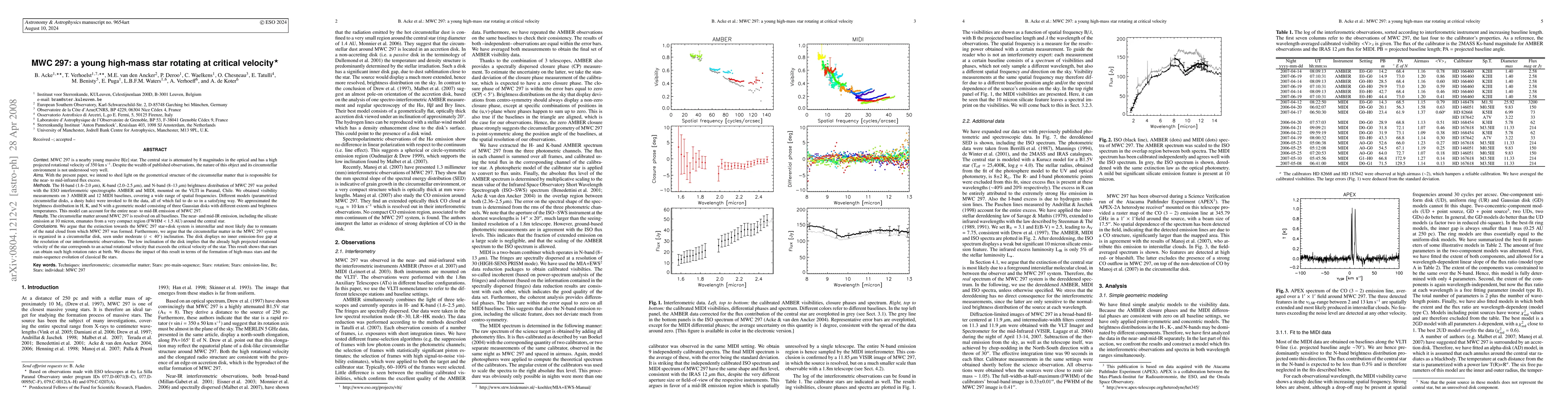 This paper reveals that a young, massive star called MWC 297 is rotating at its critical velocity, with its circumstellar matter forming a disk seen under a moderate inclination angle. The study uses interferometric spectrographs to map the star's brightness distribution in near- to mid-infrared wavelengths.