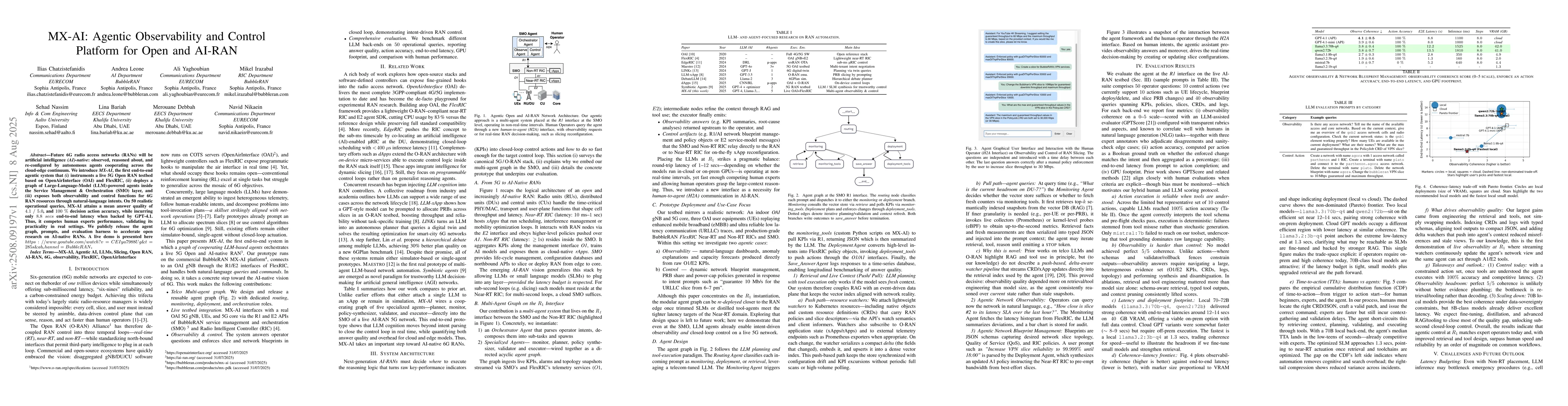 Future 6G radio access networks (RANs) will be artificial intelligence (AI)-native: observed, reasoned about, and re-configured by autonomous agents cooperating across the cloud-edge continuum. We introduce MX-AI, the first end-to-end agentic system that (i) instruments a live 5G Open RAN testbed based on OpenAirInterface (OAI) and FlexRIC, (ii) deploys a graph of Large-Language-Model (LLM)-powered agents inside the Service Management and Orchestration (SMO) layer, and (iii) exposes both observability and control functions for 6G RAN resources through natural-language intents. On 50 realistic operational queries, MX-AI attains a mean answer quality of 4.1/5.0 and 100 % decision-action accuracy, while incurring only 8.8 seconds end-to-end latency when backed by GPT-4.1. Thus, it matches human-expert performance, validating its practicality in real settings. We publicly release the agent graph, prompts, and evaluation harness to accelerate open research on AI-native RANs. A live demo is presented here: https://www.youtube.com/watch?v=CEIya7988Ug&t=285s&ab_channel=BubbleRAN