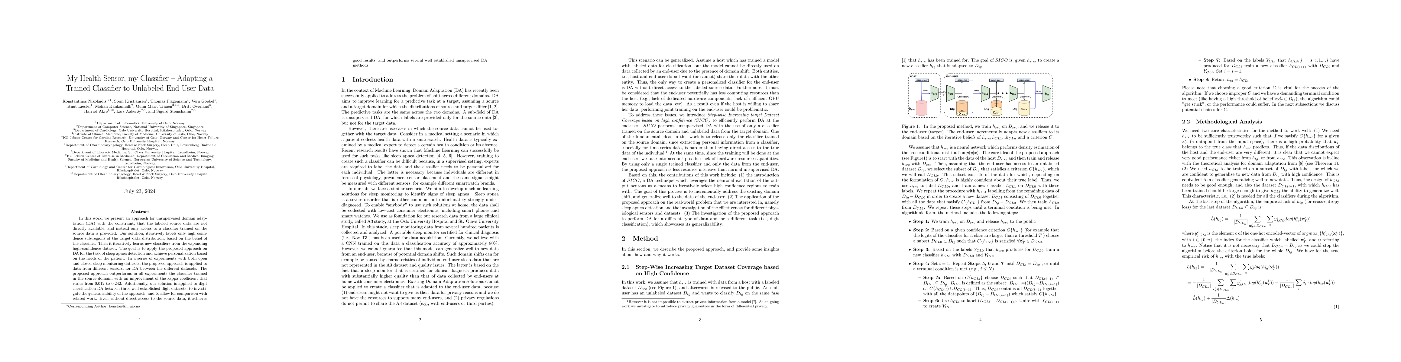 This research paper presents an approach for adapting a trained classifier to unlabeled end-user data, achieving personalization in unsupervised domain adaptation for tasks like sleep apnea detection. The proposed method outperforms existing methods with improvements of 0.012 to 0.242 on kappa coefficient.