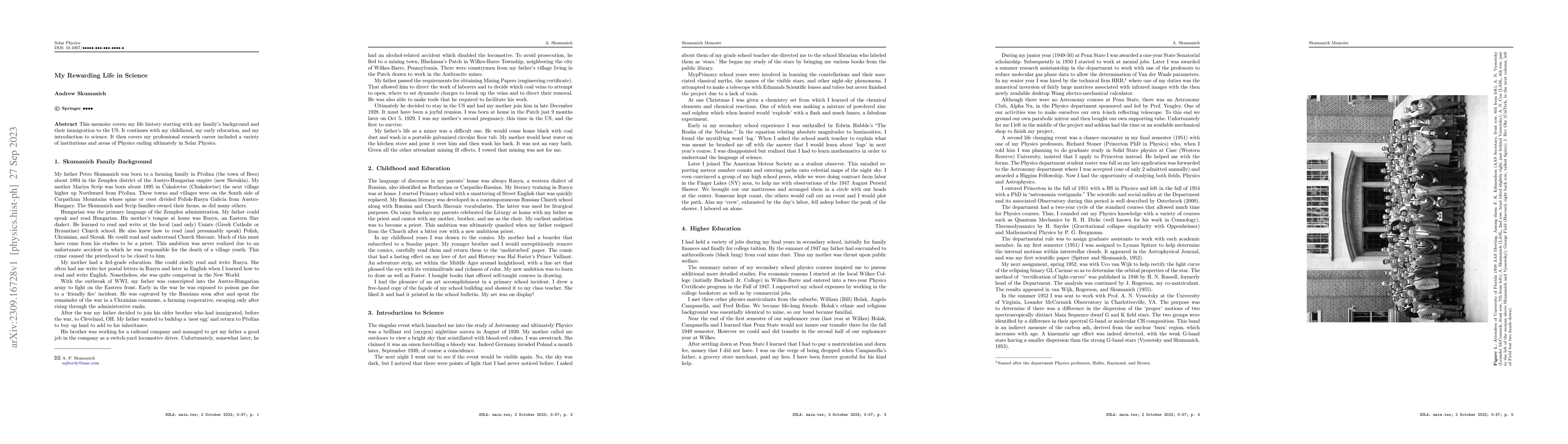 This memoir recounts the author's journey from family immigration to the US, through childhood and early education, to a distinguished career in Physics culminating in Solar Physics research across various institutions.