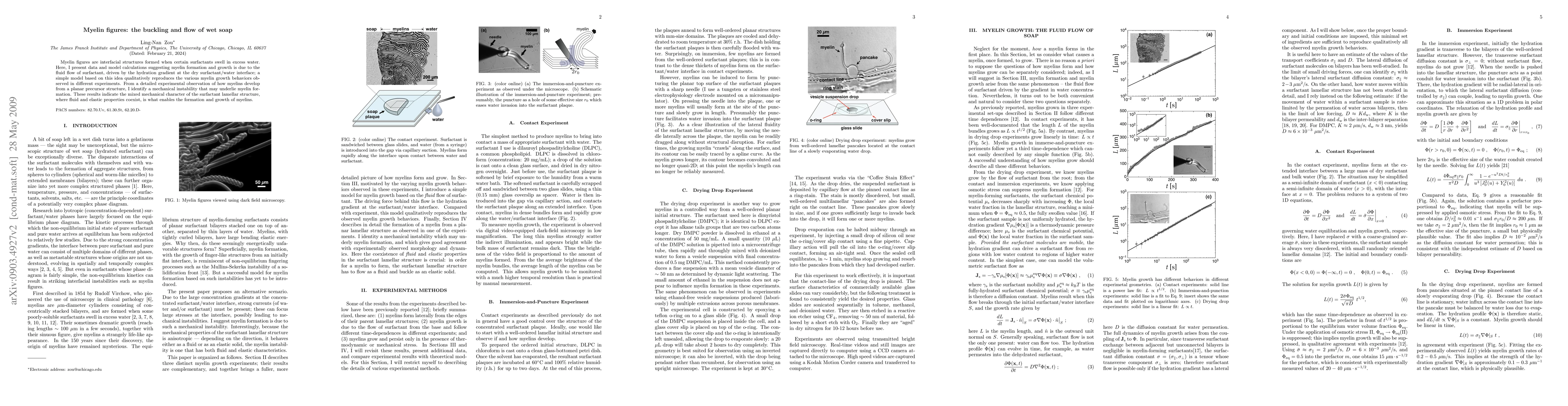 This paper investigates the formation of myelin figures through the fluid flow of surfactants driven by hydration gradients, proposing a model that explains observed growth behaviors. It identifies a mechanical instability in the development process, highlighting the coexistence of fluid and elastic properties in the surfactant lamellar structure that facilitates myelin formation.
