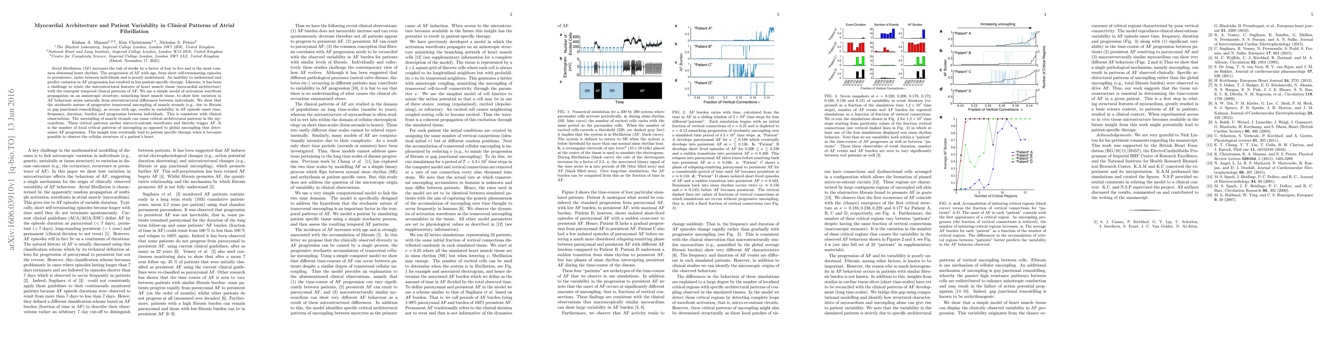 The development and application of a simple yet effective computational model linking microstructural differences in heart muscle tissue to the temporal clinical patterns of Atrial Fibrillation.