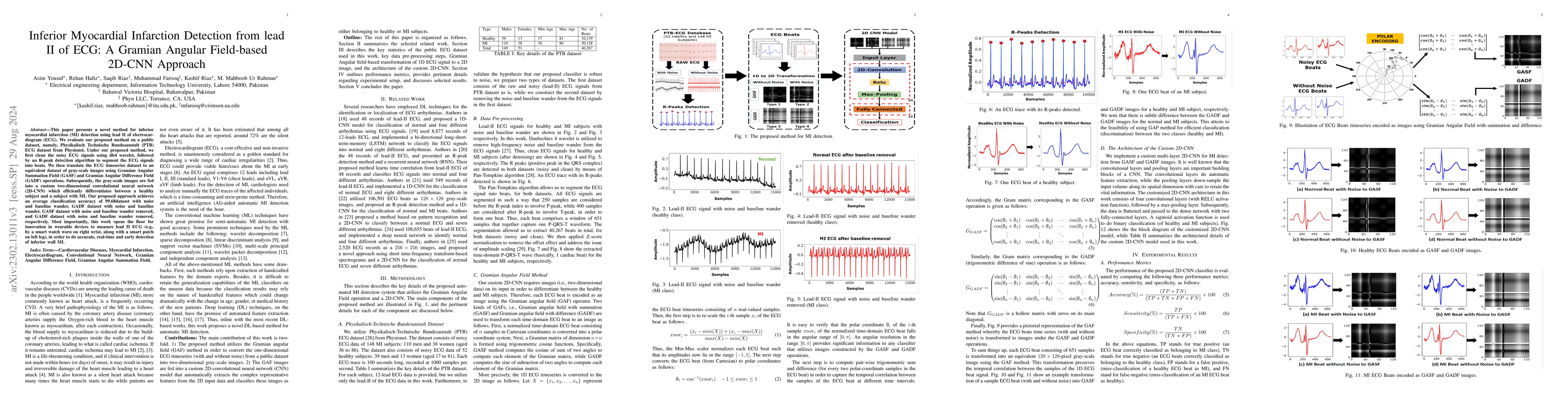 This paper introduces a novel 2D-CNN approach for myocardial infarction detection using ECG lead II, converting timeseries data into images via Gramian Angular Fields and achieving high accuracy in classifying healthy vs. MI beats, demonstrating potential for real-time, wearable MI detection.